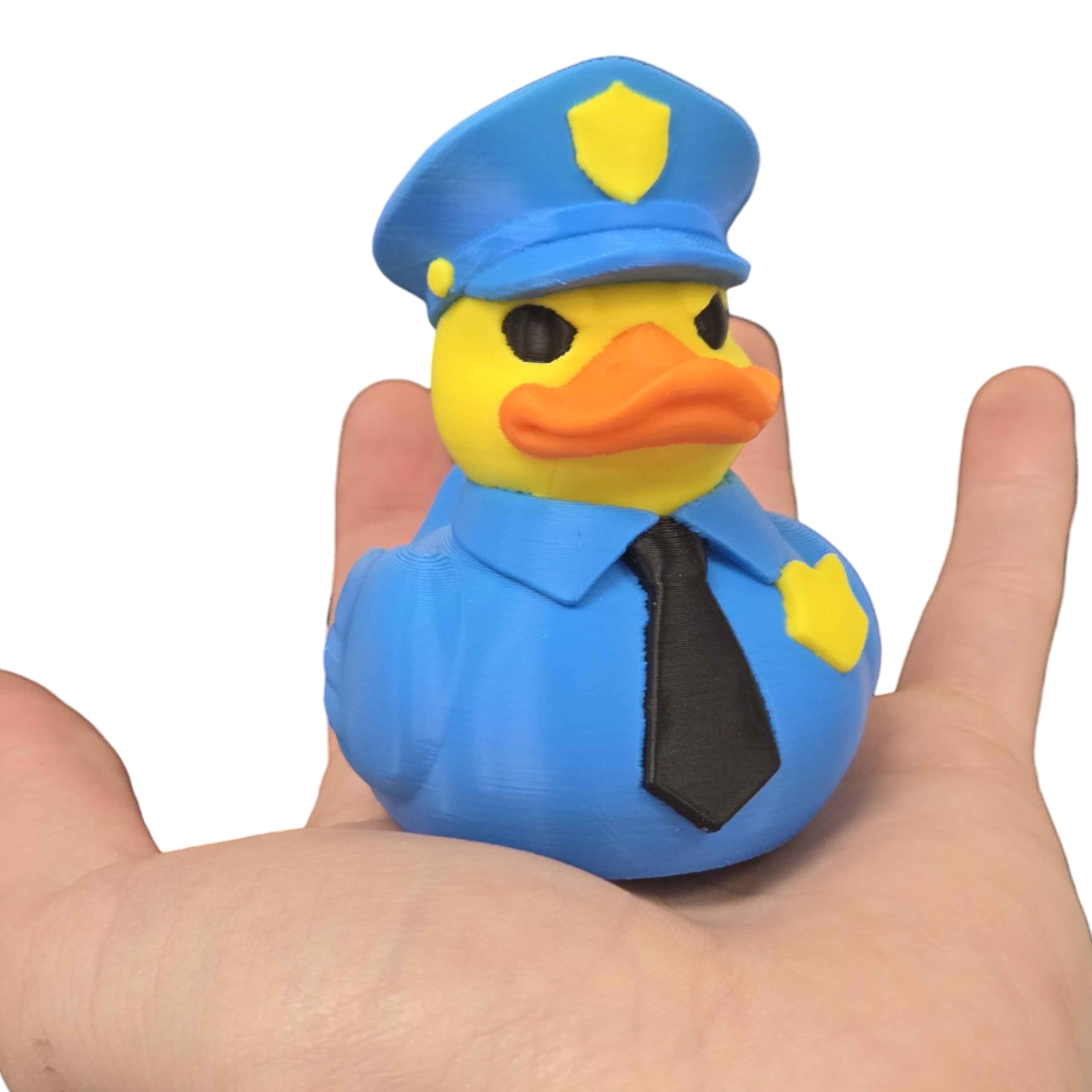 The Police Officer Duck Figurine – Funny Law Enforcement Collectible for Desk Decor, Appreciation Gifts & Shelf Display is a decorative 3D printed collectible from 3DCentral’s extensive duck collection. Printed at our Quebec-based industrial print farm, this piece captures the playful spirit of rubber duck culture with modern additive manufacturing precision. Premium PLA filament ensures vibrant colors and a smooth, display-ready finish straight out of the box.