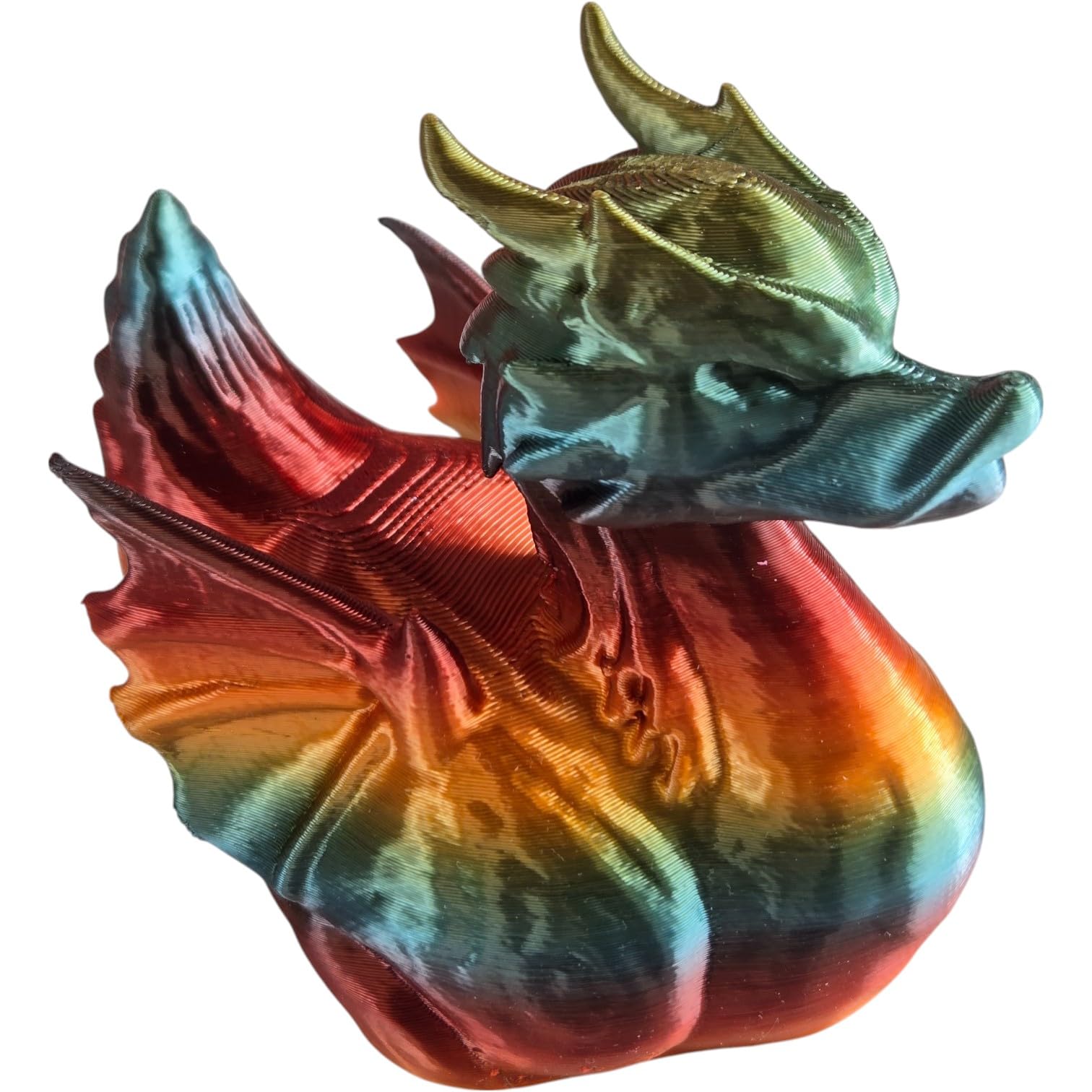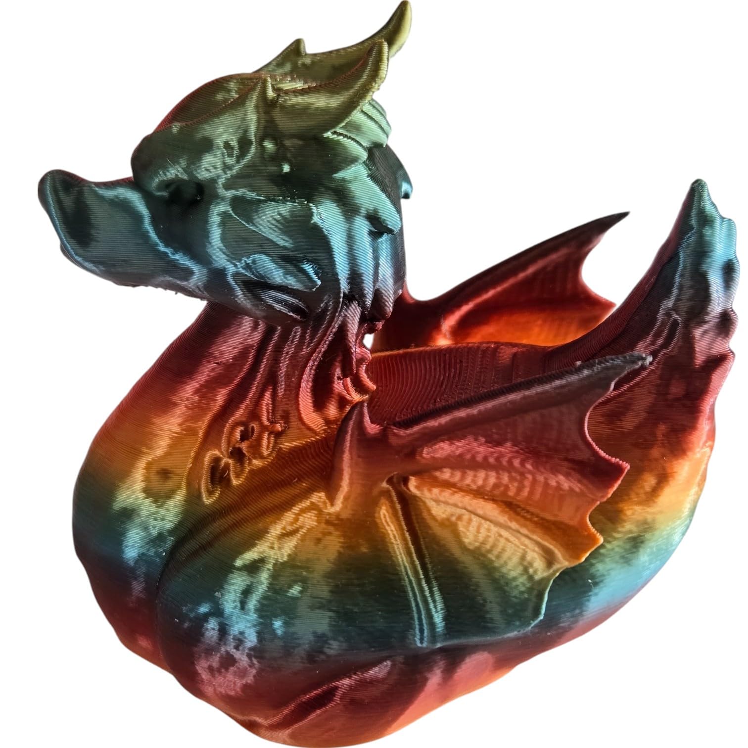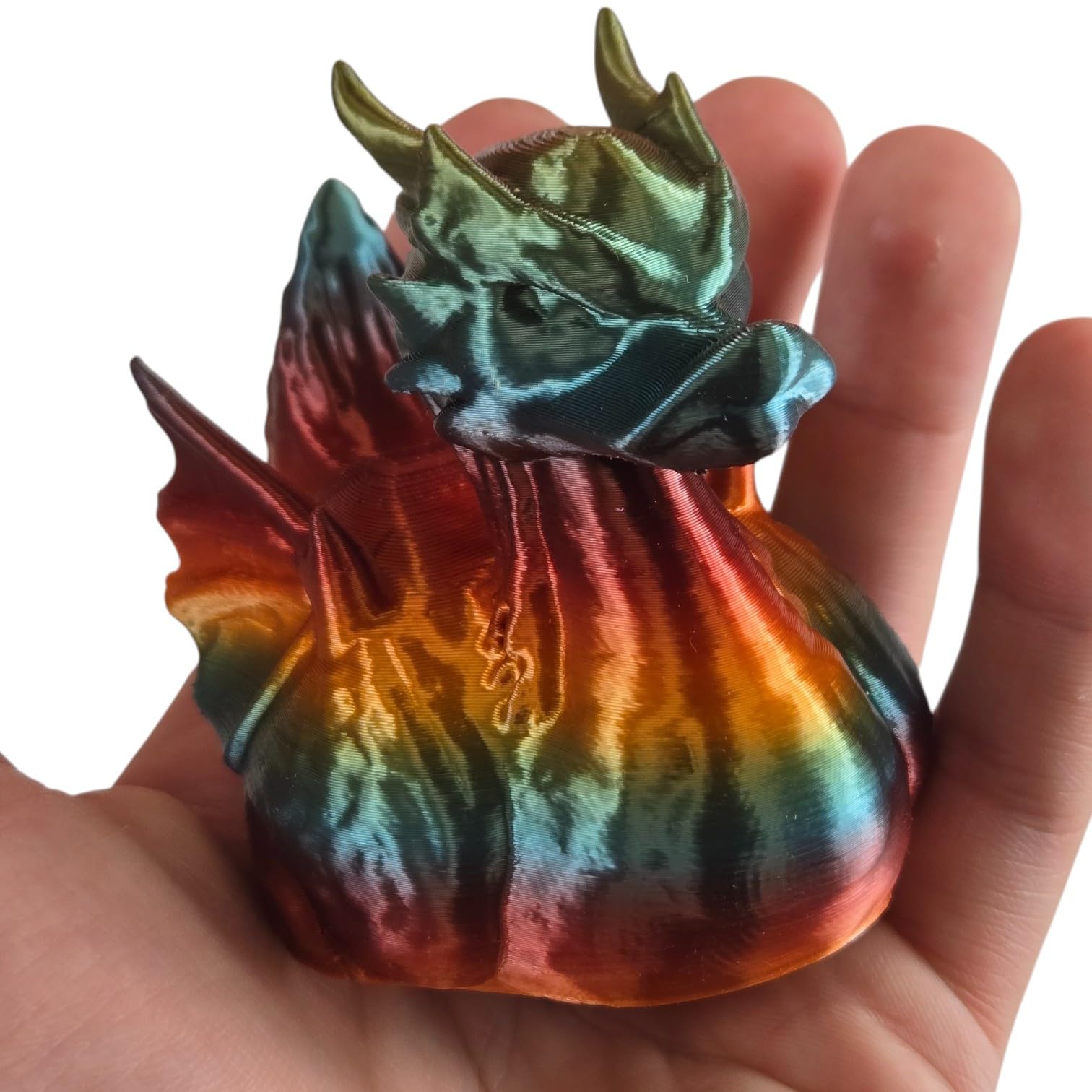 The Rainbow Dragon Duck Figurine – Rubber Ducky Alternative Car Dashboard Ornament – Fantasy Collectible Figurine Cruise Duck Hiding Gift 4×4 Decor brings character and charm to any display. 3D printed on our industrial print farm in Quebec, this collectible duck is produced in premium PLA filament with optimized print settings for decorative objects. Each piece is inspected before shipping to ensure it meets our standards for color, surface finish, and structural quality.