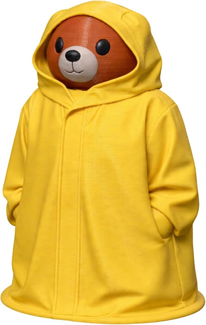 The Raincoat Teddy Bear Cub Figurine in Yellow Hooded Coat – Cute Collectible Bear Sculpture for Shelf, Desk or Gift Display is a decorative teddy bear figurine from 3DCentral’s collectible series. 3D printed on our Quebec-based print farm using premium PLA, this piece captures the timeless charm of stuffed bears through modern manufacturing — textured surfaces mimic stitching and fur patterns with remarkable fidelity.