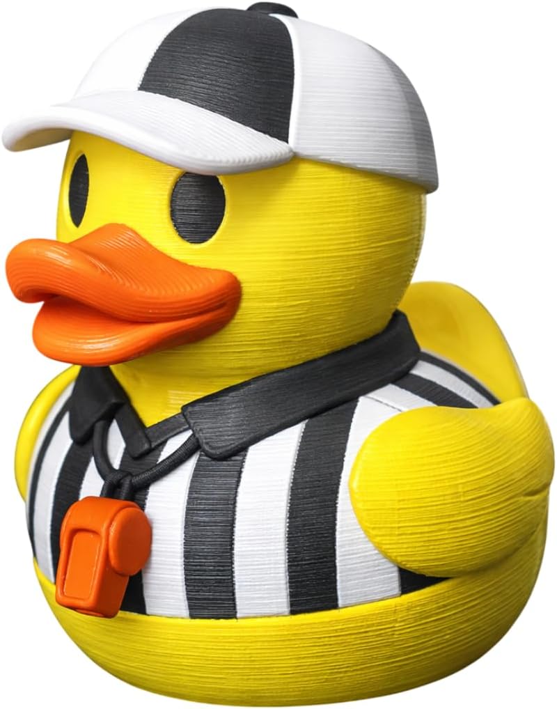 The Referee Duck Figurine – Funny Sports Decor, Whistle Accessory, Striped Uniform Rubber Duck Style Collectible is part of 3DCentral’s growing catalog of 3D printed collectibles. Produced on our industrial print farm in Laval, Quebec, this piece is printed in premium PLA filament with settings optimized for decorative objects. Every unit is inspected for surface quality and color accuracy before shipping.