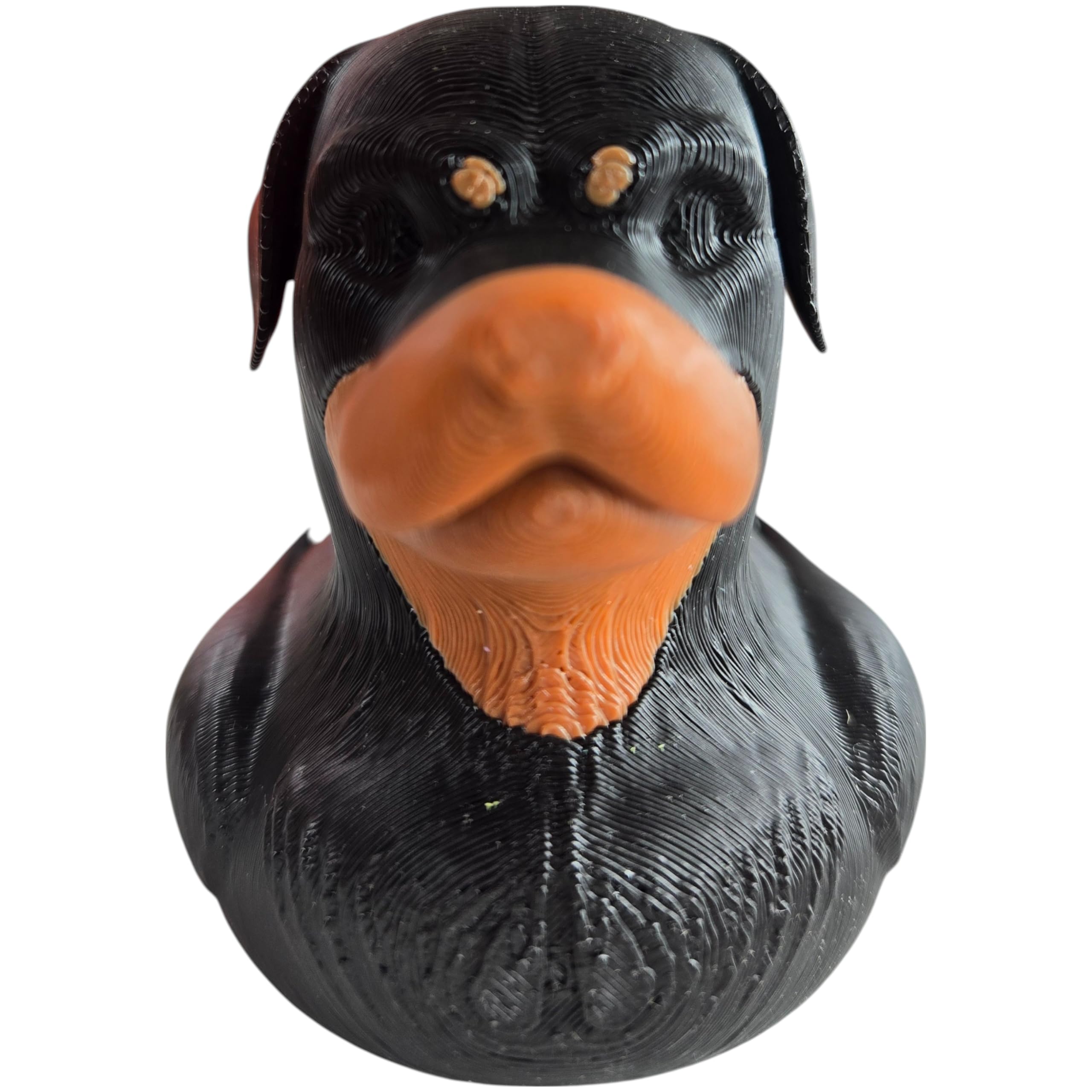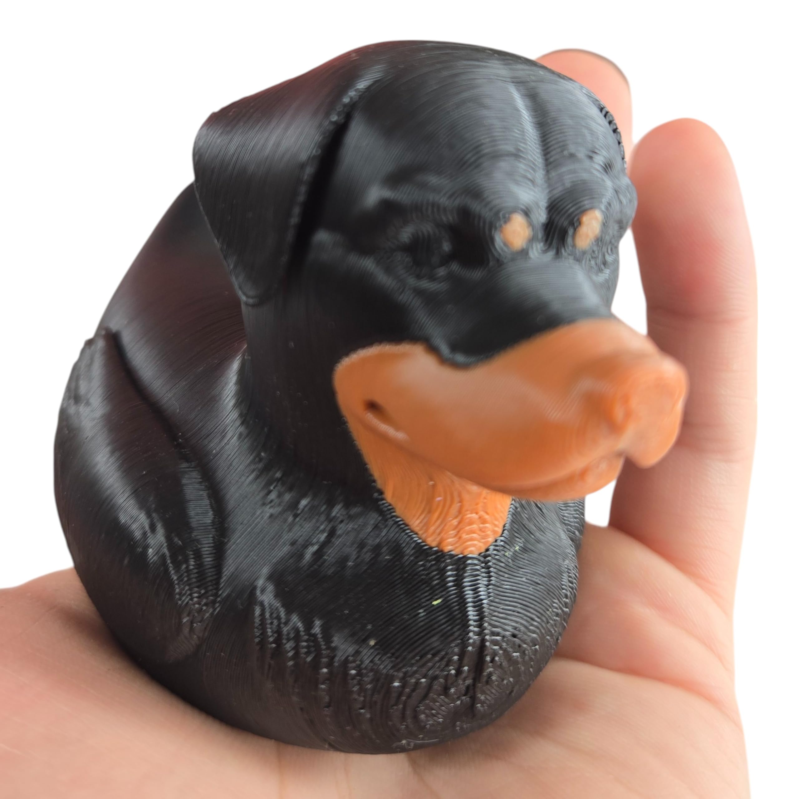 The Rottweiler Duck Figurine – Dog-Themed Collectible for Duck Duck 4×4, Cruise Ship Hiding, Off-Road Rubber Duck Gift, Desk Decor for Dog Lovers is a decorative 3D printed collectible from 3DCentral’s extensive duck collection. Printed at our Quebec-based industrial print farm, this piece captures the playful spirit of rubber duck culture with modern additive manufacturing precision. Premium PLA filament ensures vibrant colors and a smooth, display-ready finish straight out of the box.