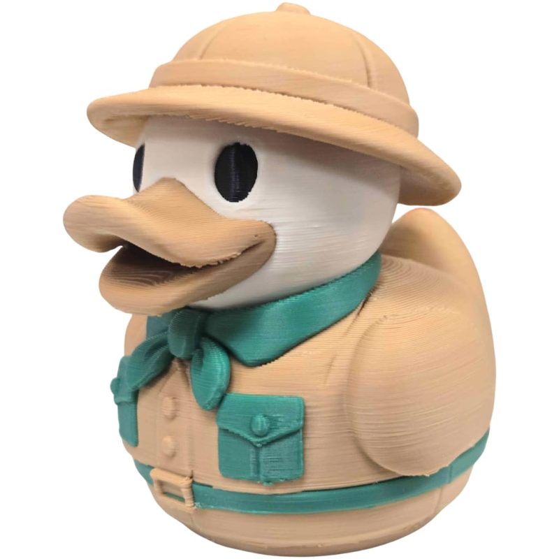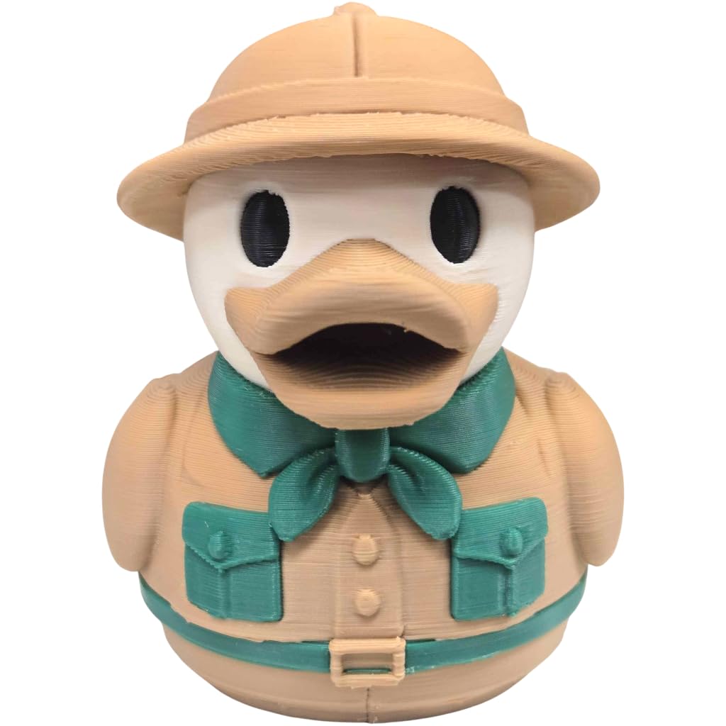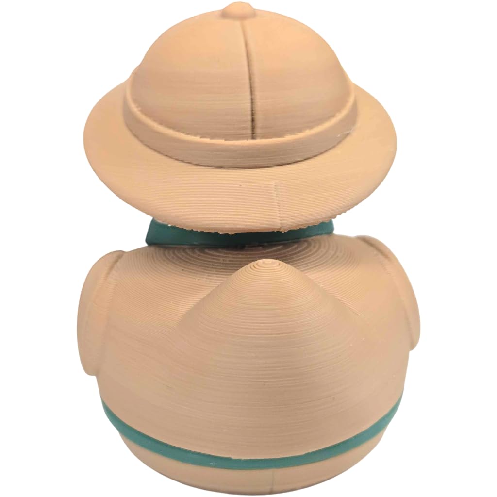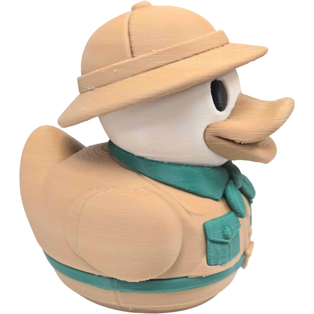 Add the Safari Explorer Duck Figurine – Jungle Adventurer Rubber Duck-Style Decor Collectible – Cute Desk Toy, Shelf Ornament, or Gift for Duck Lovers to your shelf — a unique 3D printed duck collectible from our Quebec print farm. This piece is part of a 1,000+ design duck catalog, each printed in premium PLA filament for rich color and fine detail. Every duck we produce reflects our commitment to small-batch quality and creative design.