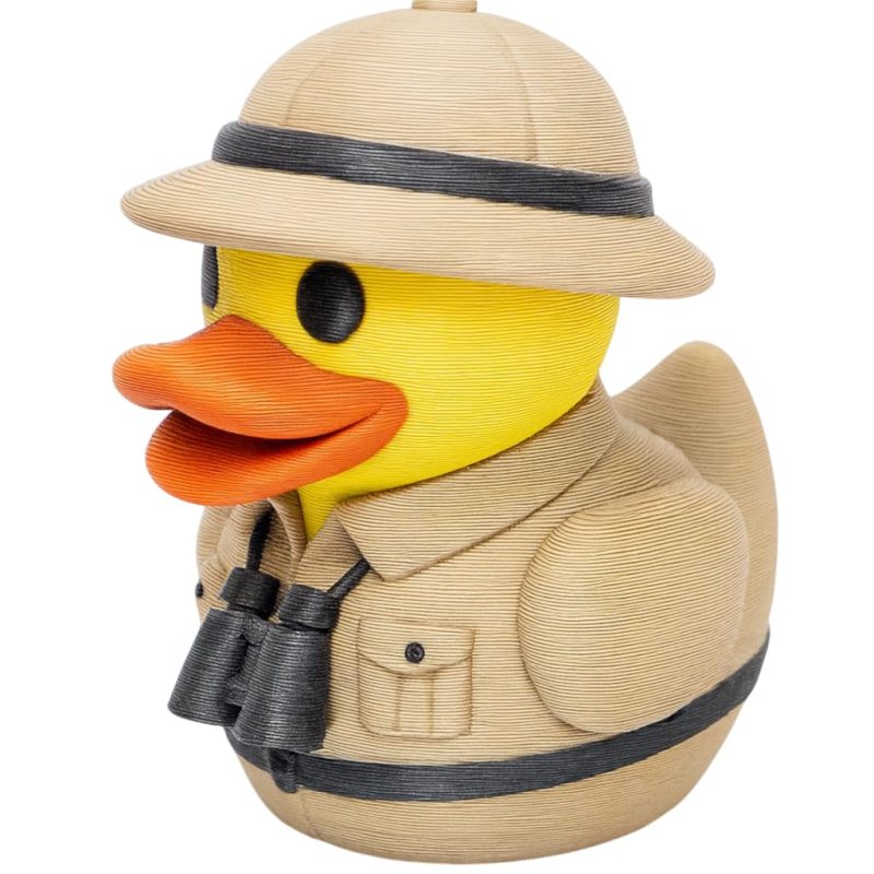 About the Savannah Explorer Duck Figurine – 3D Printed Duck with Safari Hat & Binoculars for Shelf Decor, Gifts & Collectors
