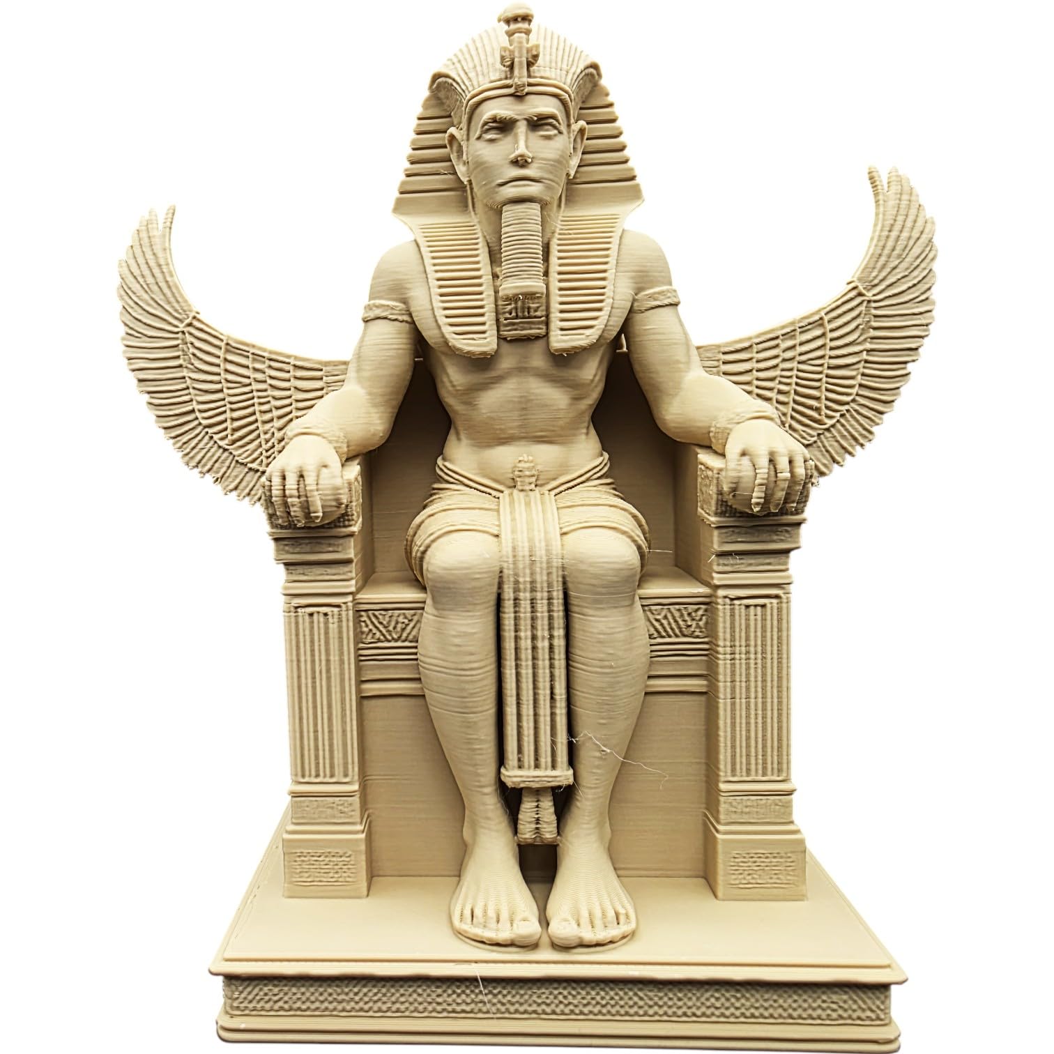 Meet the Seated Egyptian Pharaoh Statue – Ancient Ruler on Throne with Winged Backrest – Egyptian Decor for Desk, Altar, or Bookshelf — a handcrafted 3D printed collectible from our Quebec-based print farm. This figurine is part of a catalog of 4,800+ designs, each produced in premium PLA filament on our fleet of 200+ industrial 3D printers. Quality-inspected and carefully packaged before every shipment.