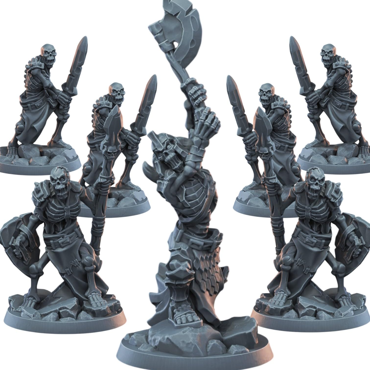 About the Set of 7 Undead Skeleton Miniatures – Knight, Spearmen & Warriors for Tabletop Fantasy Battles & Painting