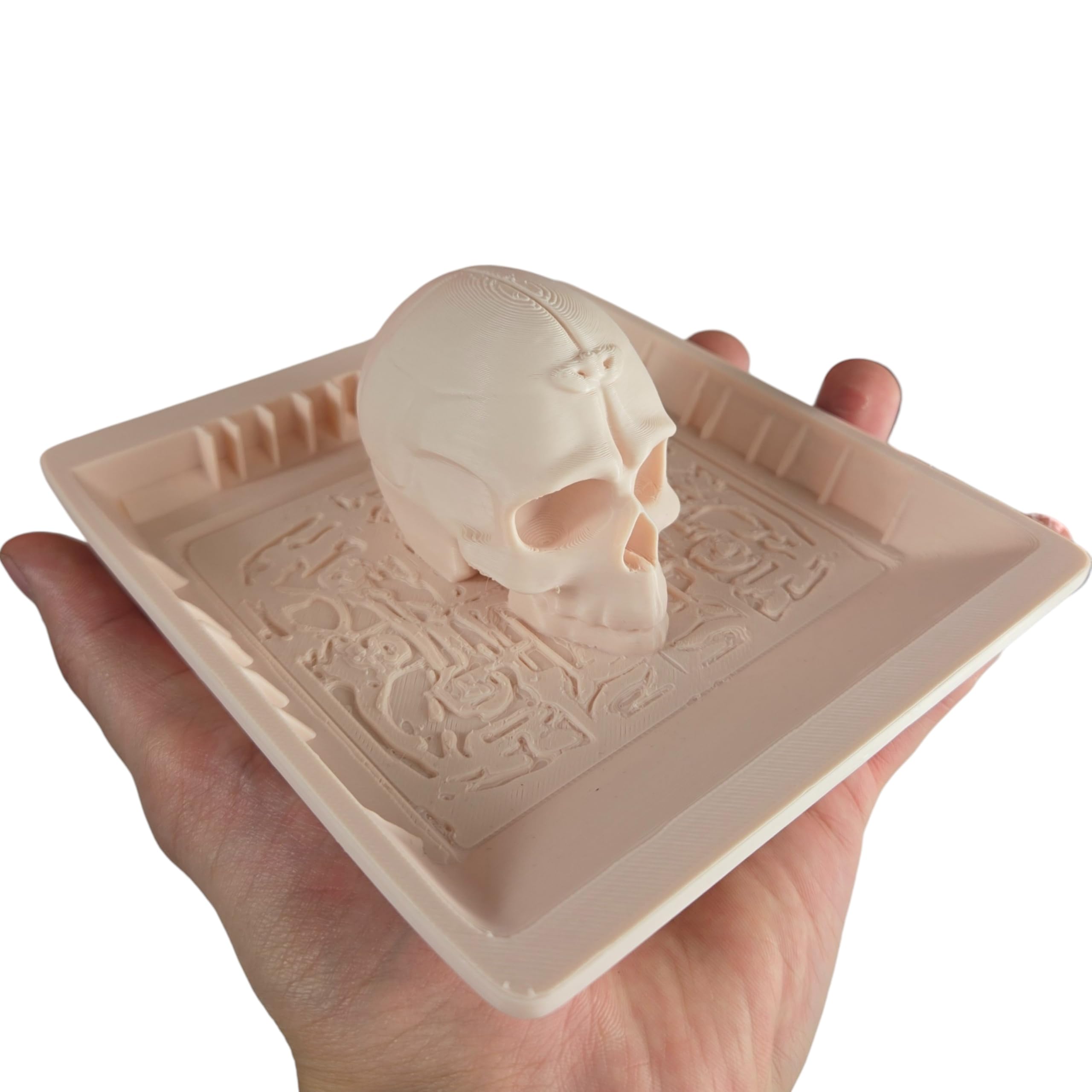 Meet the Skull Catch-All Tray – Gothic Desk Organizer with 3D Skull Accent for Keys, Coins, Dice, or Jewelry — a handcrafted 3D printed collectible from our Quebec-based print farm. This figurine is part of a catalog of 4,800+ designs, each produced in premium PLA filament on our fleet of 200+ industrial 3D printers. Quality-inspected and carefully packaged before every shipment.
