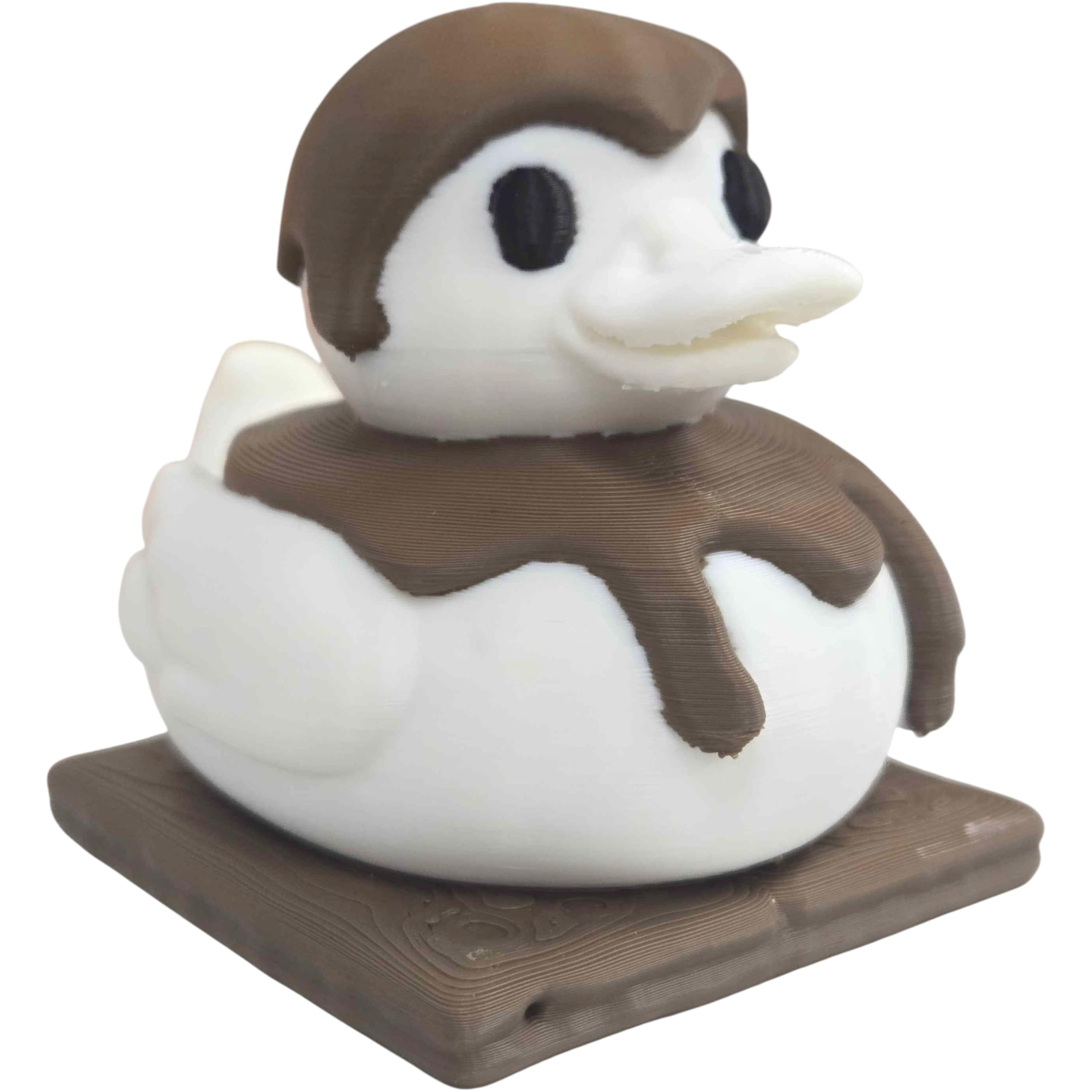 Meet the Smore Duck Collectible Figurine – Chocolate-Themed Cute Duck Statue for Desk or Shelf Display – Fun Novelty Gift for Teens & Adults — a handcrafted addition to our Ducks catalog. Produced on demand at our Laval, Quebec print farm, each unit is printed in premium PLA with attention to surface quality and color detail. Our duck collection celebrates creativity and collectibility, with designs ranging from classic to wildly imaginative.