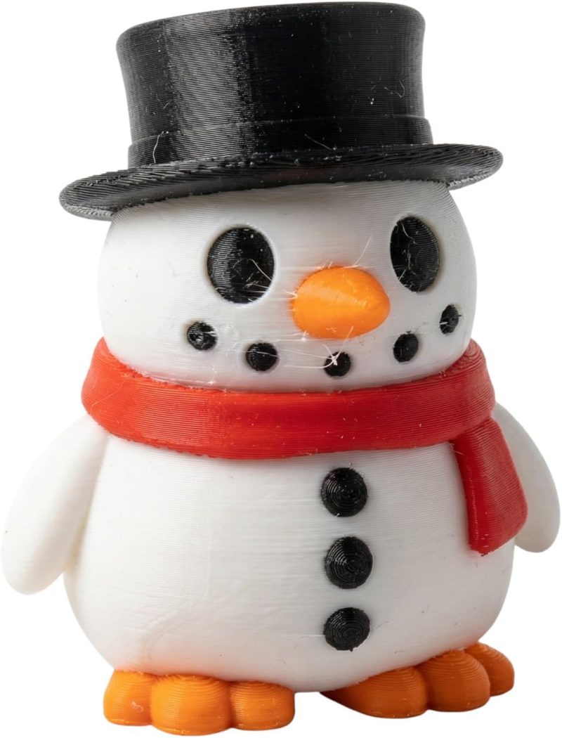 The Snowman Penguin Figurine – Cute Winter Holiday Decor for Desk, Shelf or Collectible Display – Adorable Frosty Animal Ornament is an adorable penguin collectible from 3DCentral, 3D printed on our industrial print farm in Quebec. Each penguin features smooth surfaces, clean color transitions, and the charming poses that make these arctic birds universally loved. Printed in premium PLA filament for display-ready quality straight from the box.