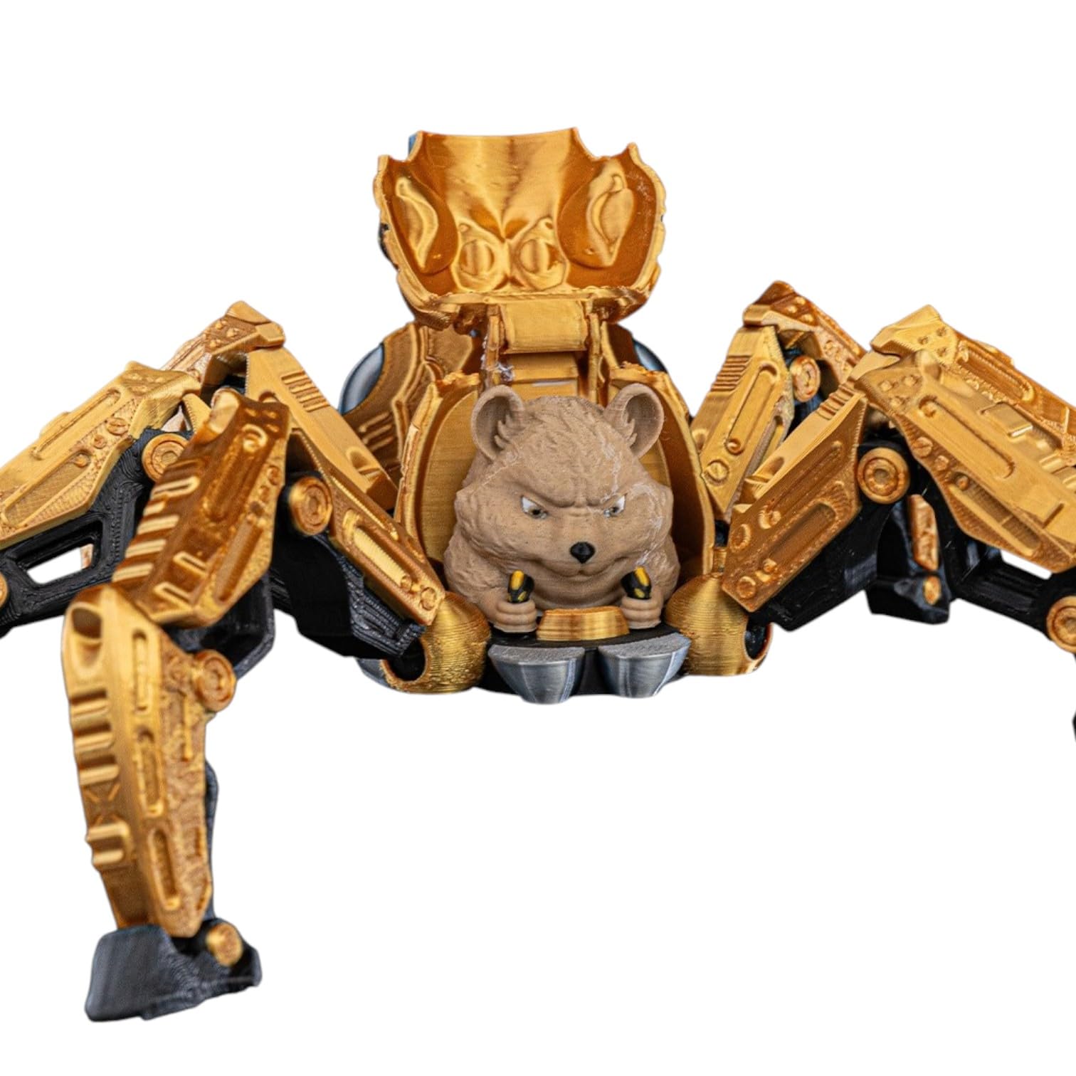 About the Spiderbot Mecha Figurine with Hidden Pilot – Mechanical Desk Fidget for Teens & Adults – Stress Relief & Collectible