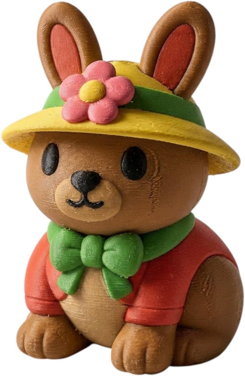 This Spring Bonnet Bunny Collectible Figurine – Unique Desk Decor for Adults is part of 3DCentral’s Seasonal collection. We add new designs regularly and retire limited editions periodically to maintain collector value. Display on a shelf, desk, or in a dedicated collection cabinet. The piece is lightweight yet sturdy, suited for any indoor display setting. Multi-pack bundles are available for building complete themed displays.