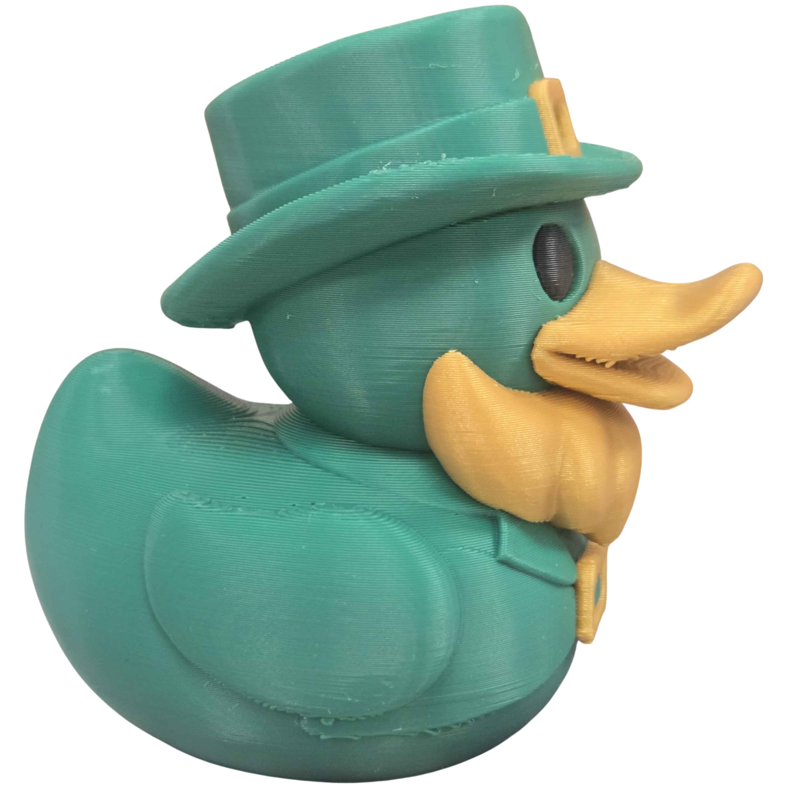 The St. Patrick’s Leprechaun Duck Figurine – Lucky Green Duck Statue with Gold Beard & Hat for Holiday Decor, Collectors, and Irish-Themed Gifts brings character and charm to any display. 3D printed on our industrial print farm in Quebec, this collectible duck is produced in premium PLA filament with optimized print settings for decorative objects. Each piece is inspected before shipping to ensure it meets our standards for color, surface finish, and structural quality.