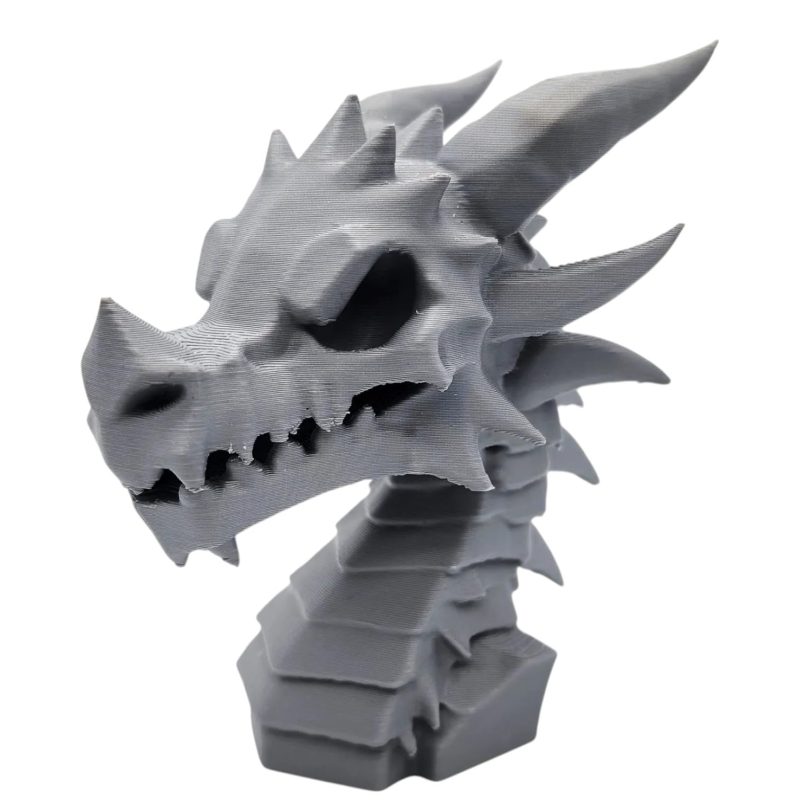 The Stone-Carved Dragon Skull Statue – Gothic Fantasy Creature Bust for Shelf, Desk or Display is a detailed display bust from 3DCentral’s collectible series. Printed at fine layer heights (0.12-0.16mm) on our industrial print farm in Quebec, this piece captures facial expressions, hair textures, and decorative elements with remarkable precision. A striking addition to any shelf or desk display.
