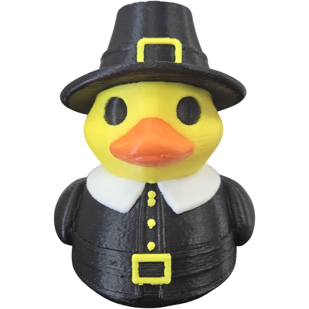 Meet the Thanksgiving Pilgrim Duck Figurine– Collectible Duck for Holiday Decor, Shelf Display & Gag Gifting — a handcrafted addition to our Ducks catalog. Produced on demand at our Laval, Quebec print farm, each unit is printed in premium PLA with attention to surface quality and color detail. Our duck collection celebrates creativity and collectibility, with designs ranging from classic to wildly imaginative.