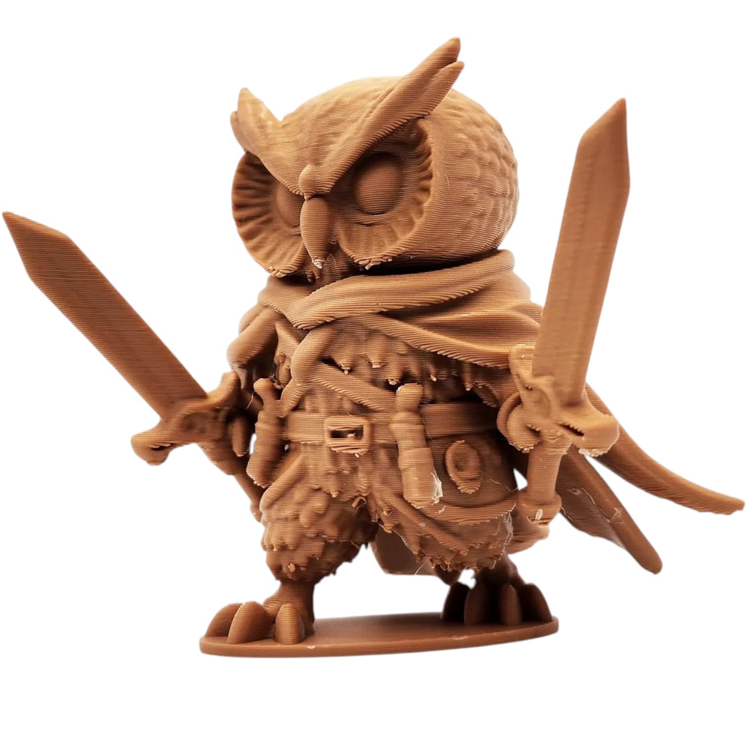 This The Fighter Owl Figurine – Dual-Sword Fantasy Owl Warrior with Tactical Belt – Owls & Dragons Collection – Paintable Display Miniature packs full articulation into a miniature format. Produced on our industrial print farm in Quebec, each joint is functional at even this compact scale — a testament to the precision of our manufacturing process. Premium PLA filament ensures clean movement and durability.