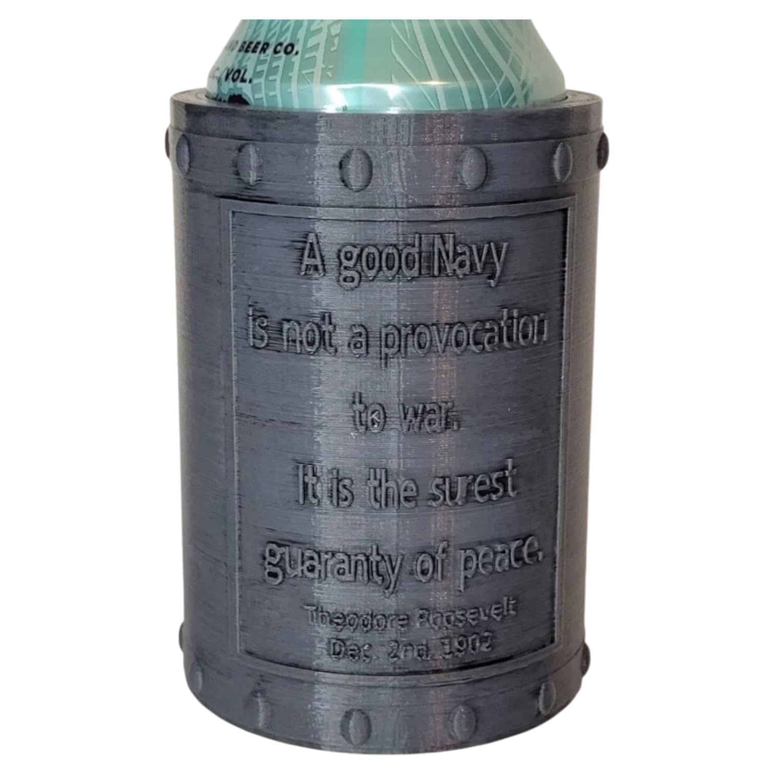 About the Theodore Roosevelt Naval Anchor Beer Can Holder – Steampunk-Inspired Navy Tribute Beverage Sleeve for 12oz Cans – Patriotic Gift for Veterans and Sailors