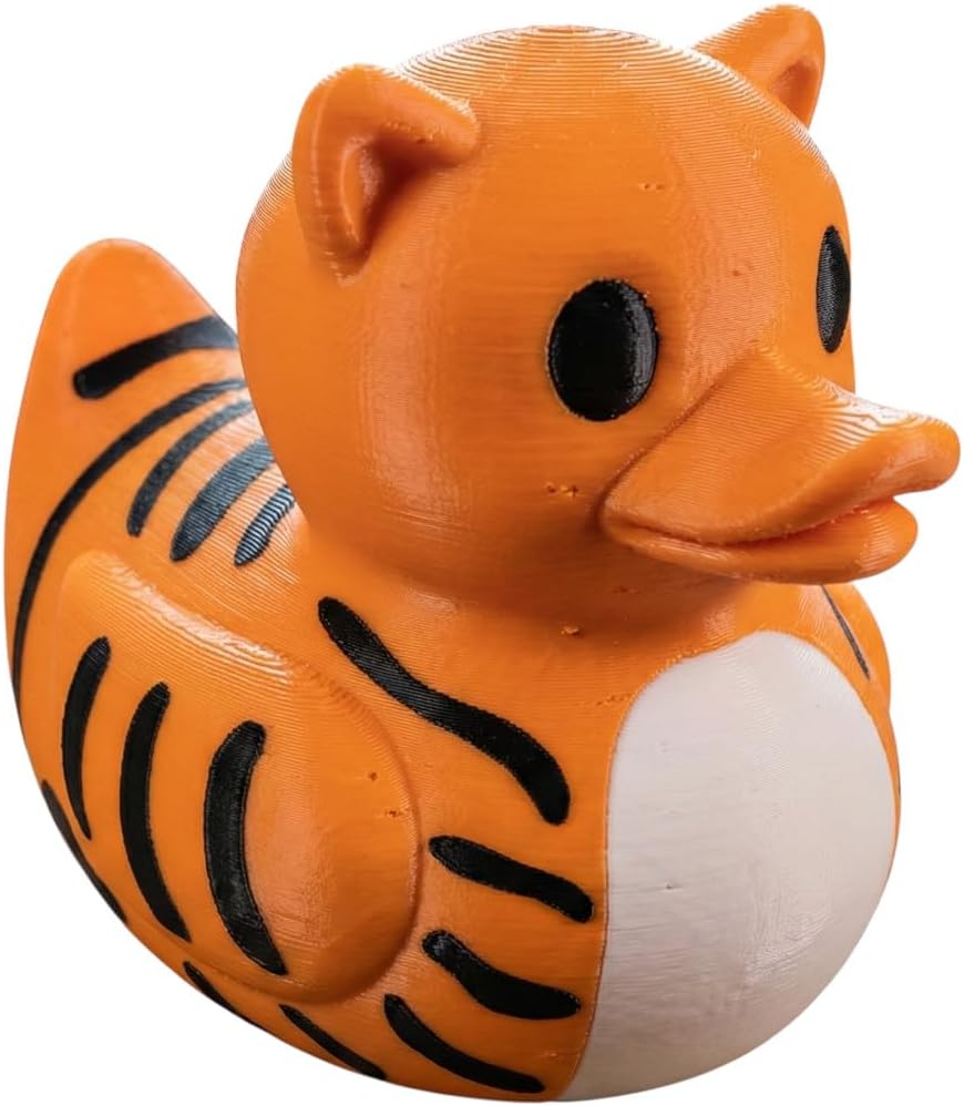 This Tiger Duck Figurine – Orange Rubber Duck Inspired Tiger Decor for Desk, Shelf, or Bathroom – Cute Collectible Gift for Teens & Adults – DV is part of 3DCentral’s Ducks collection. We add new designs regularly and retire limited editions periodically to maintain collector value. Display on a shelf, desk, or in a dedicated collection cabinet. The piece is lightweight yet sturdy, suited for any indoor display setting. Multi-pack bundles are available for building complete themed displays.