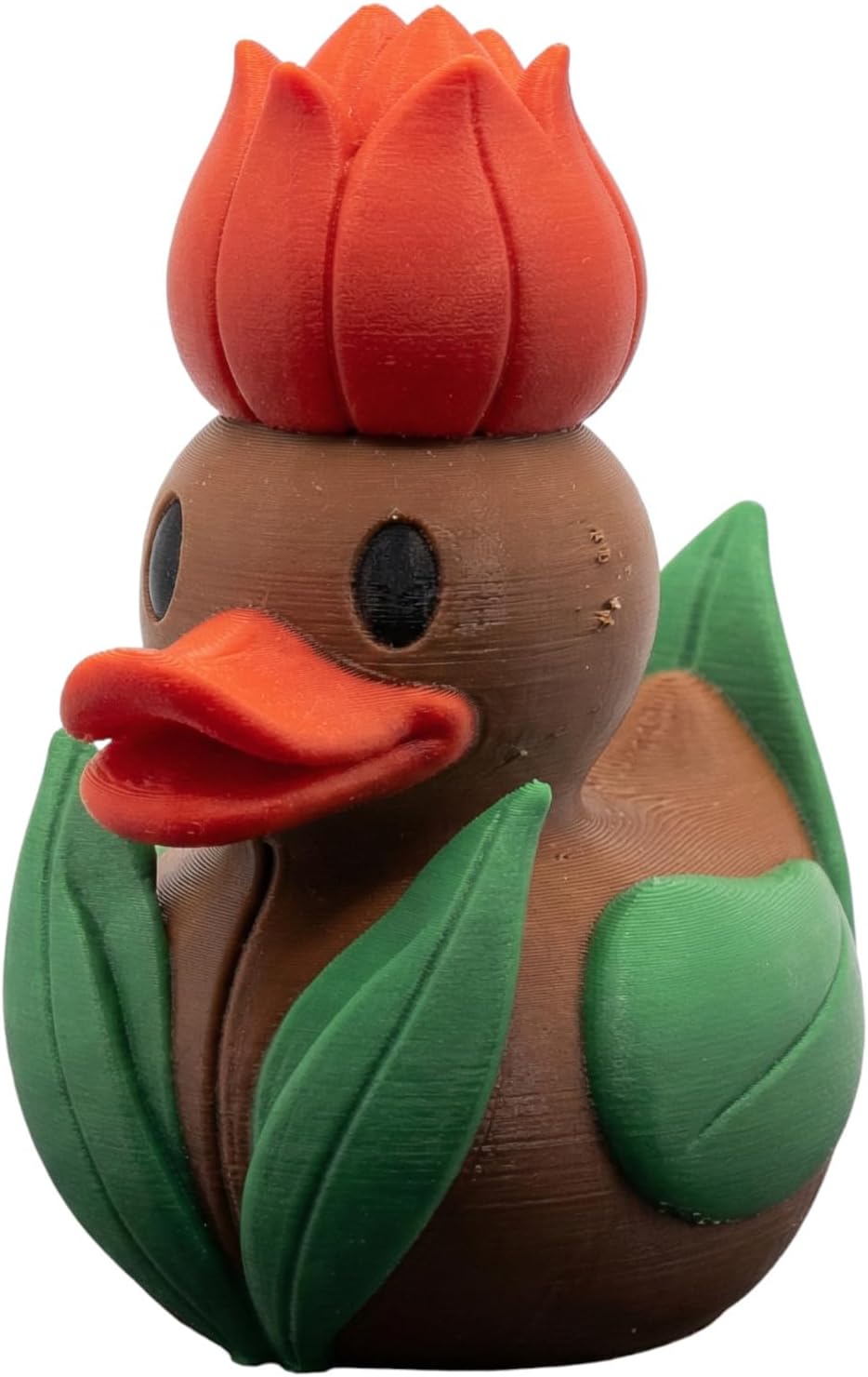 Meet the Tulip Bulb Duck Figurine – Whimsical Springtime Garden Duck with Flower Head and Leaf Wings – Cute Plant Lover Gift or Desk Decor — a handcrafted addition to our Ducks catalog. Produced on demand at our Laval, Quebec print farm, each unit is printed in premium PLA with attention to surface quality and color detail. Our duck collection celebrates creativity and collectibility, with designs ranging from classic to wildly imaginative.