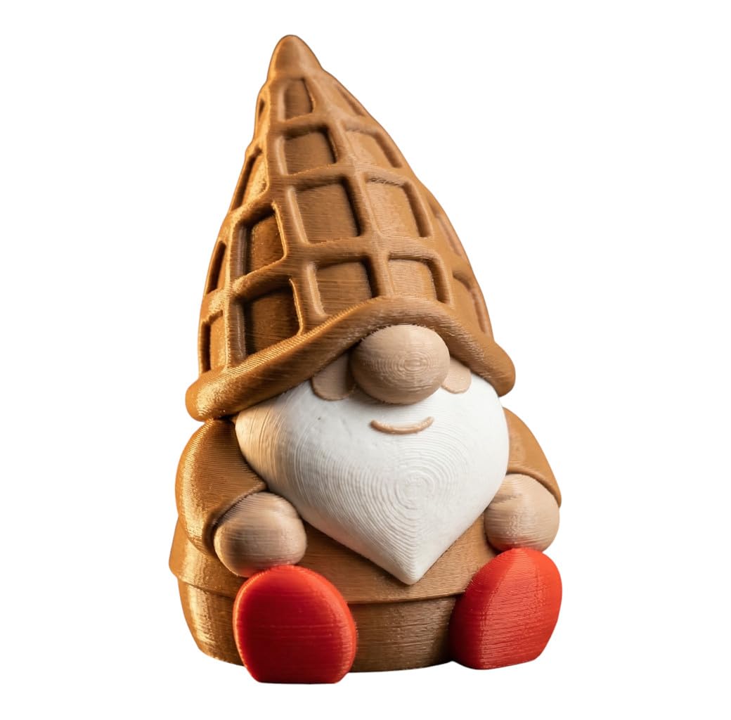 This Waffle Gnome Figurine – Cute Dessert-Inspired Shelf Decor for Office, Home or Tiered Trays is a detailed gnome collectible from 3DCentral’s catalog. Produced at our Laval, Quebec facility using premium PLA filament, every gnome features crisp textures — from flowing beards to pointed hats — that showcase the best of 3D printing technology applied to decorative art.