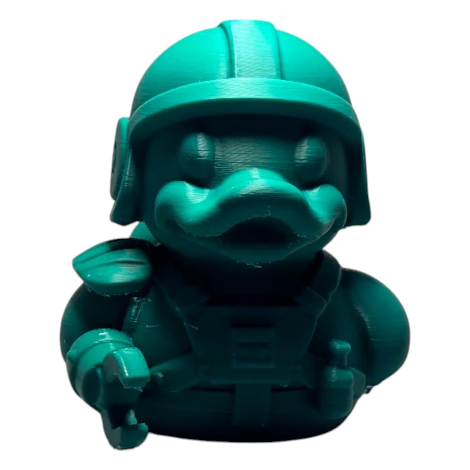 The Warrior Duck Figurine – Tactical Armored Duck with Helmet & Blaster – Funny Military-Inspired 3D Printed Geek Collectible is a decorative 3D printed collectible from 3DCentral’s extensive duck collection. Printed at our Quebec-based industrial print farm, this piece captures the playful spirit of rubber duck culture with modern additive manufacturing precision. Premium PLA filament ensures vibrant colors and a smooth, display-ready finish straight out of the box.