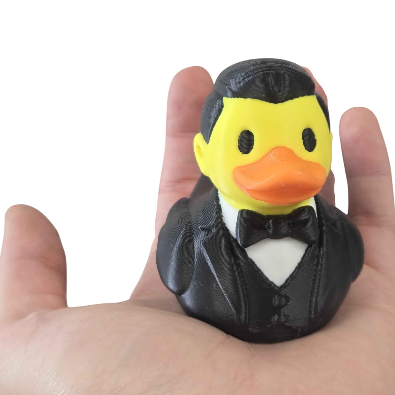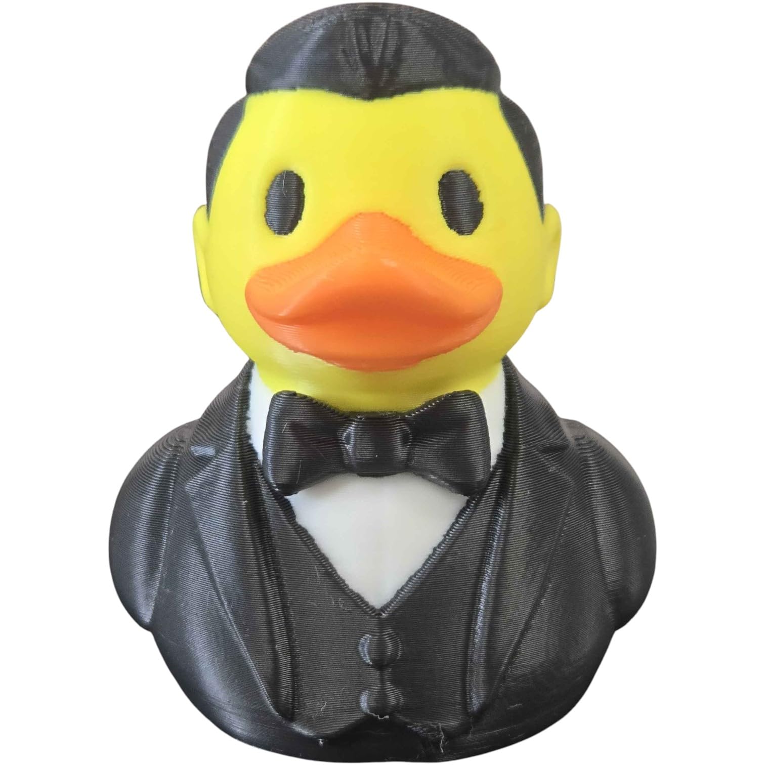 The Wedding Groom Duck Figurine – Duck in Classic Tuxedo with Bow Tie & Slicked Hair – Funny Wedding Gift or Table Decor for Newlyweds brings character and charm to any display. 3D printed on our industrial print farm in Quebec, this collectible duck is produced in premium PLA filament with optimized print settings for decorative objects. Each piece is inspected before shipping to ensure it meets our standards for color, surface finish, and structural quality.
