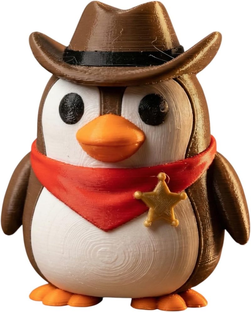 Looking for a gift that stands out? 3D printed collectibles are conversation starters — recipients are always surprised by the level of detail and craftsmanship. This Western Sheriff Penguin Figurine – Cute arrives ready to display with no assembly or painting required. A perfect choice for birthdays, holidays, office gifts, or just-because surprises.