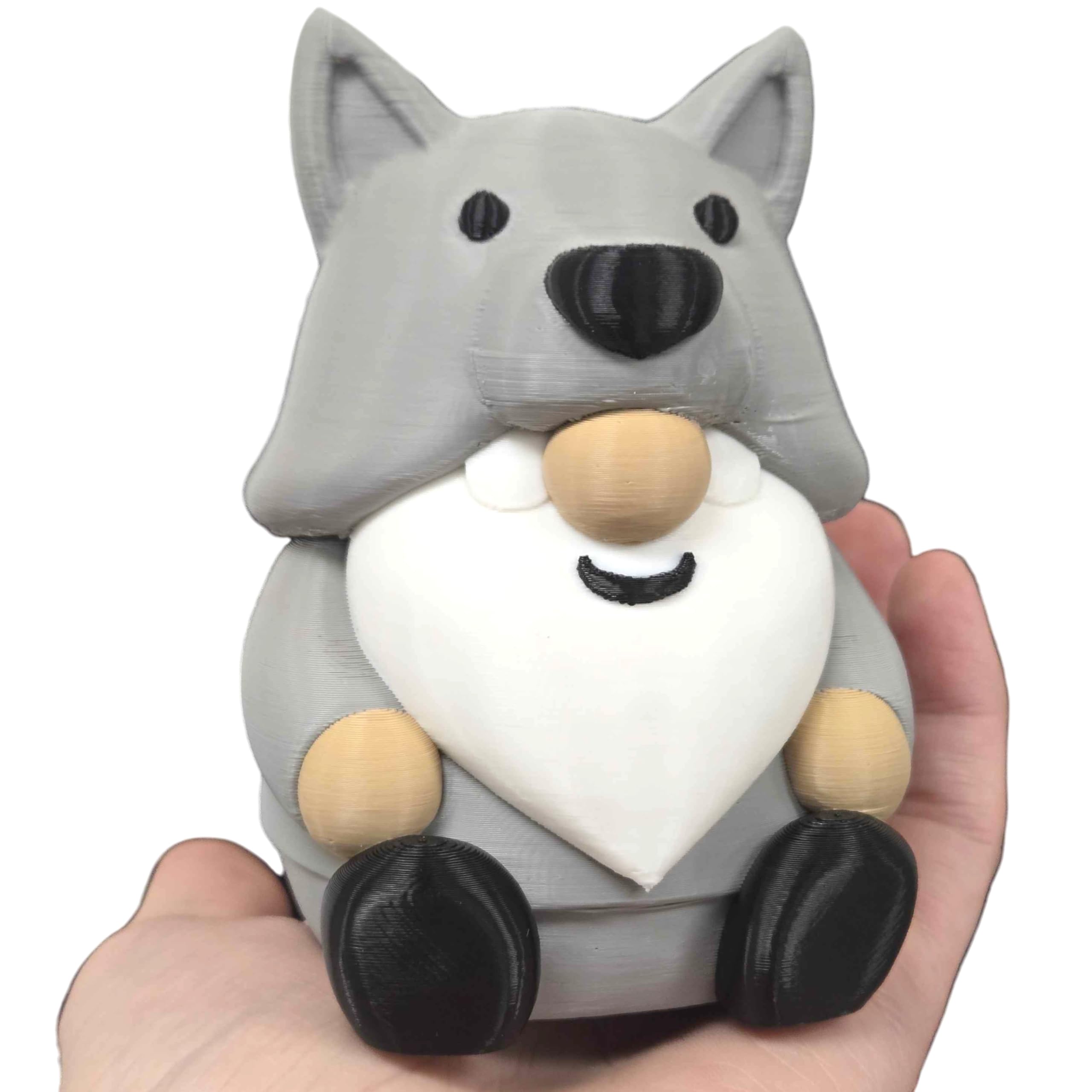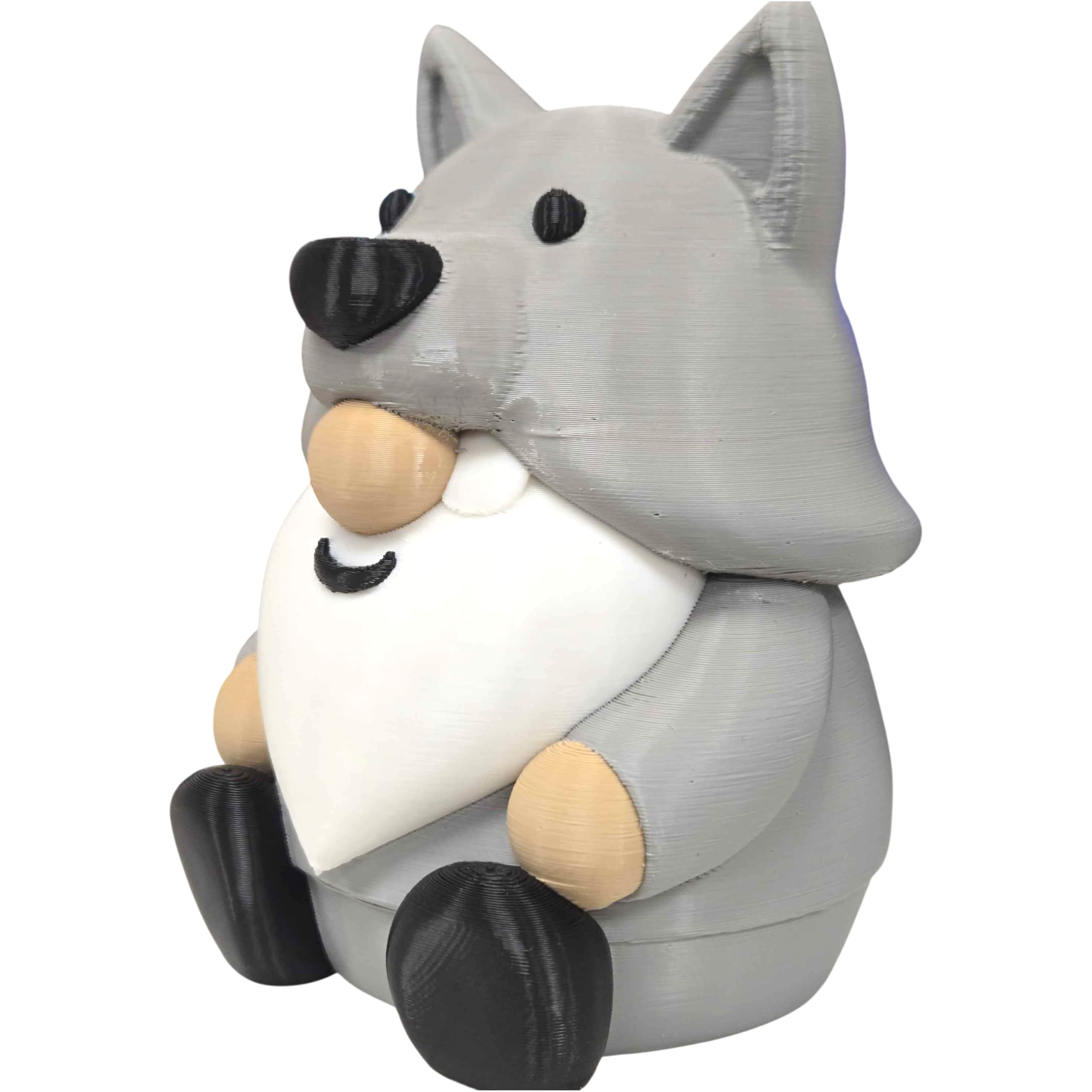 Wolf Gnome Figurine. Whimsical garden guardian and home decor accent. 3D printed collectible made in Quebec, Canada. Premium PLA, ready to display.