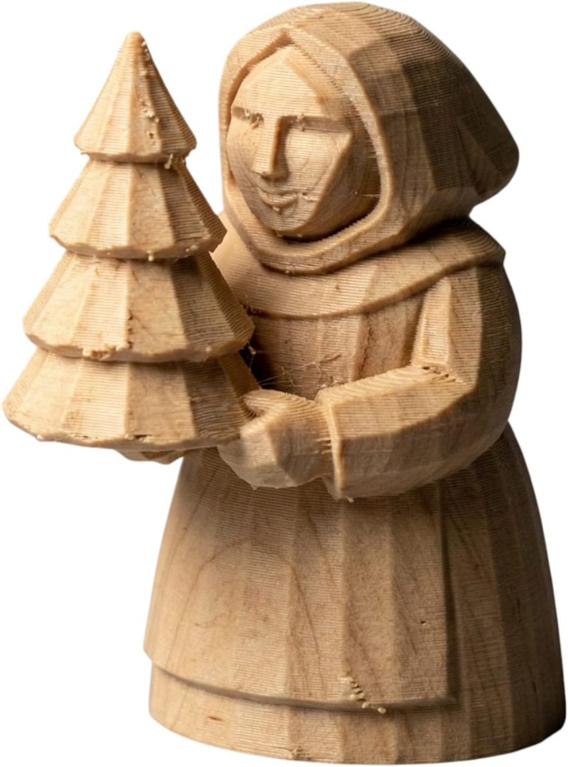 About the Wood Carved Christmas Tree Woman Figurine – Wood Carved Style Holiday Figure Holding Tree | PLA Wood Seasonal Shelf Décor