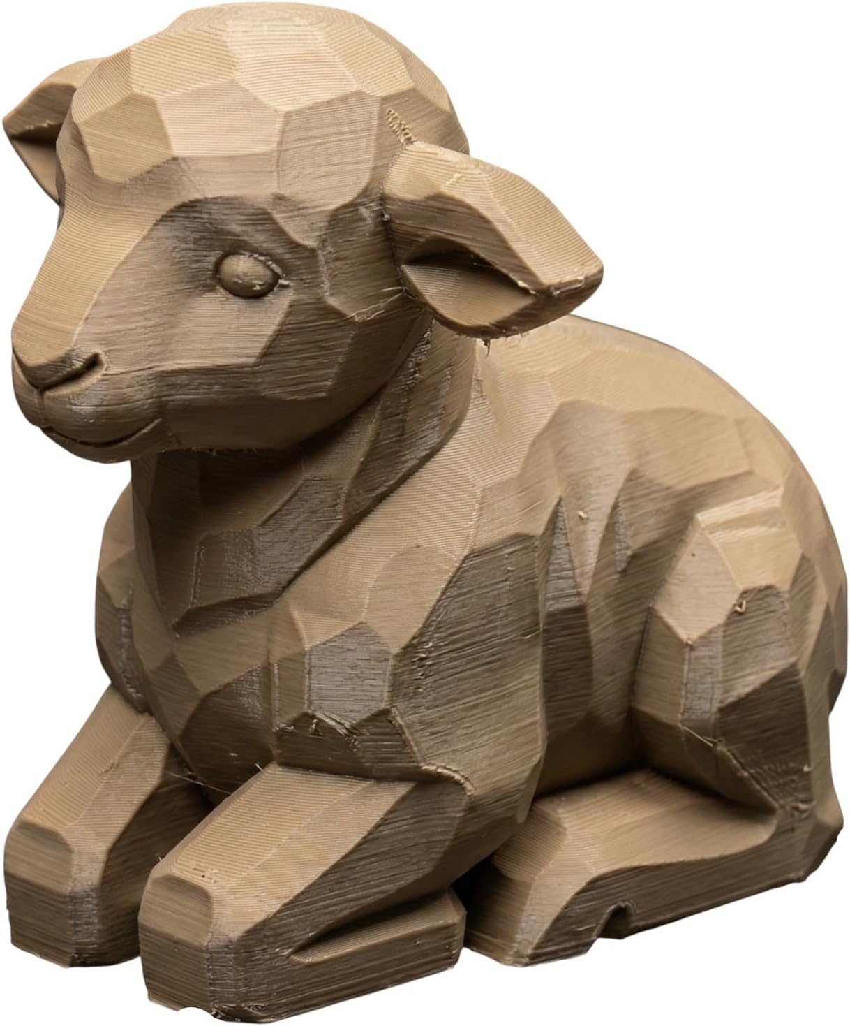 About the Wood Carved Lamb Figurine – Wood Carved Style Polygonal 3D Printed Ram Sculpture for Desk, Shelf or Mantel Display – Modern Minimalist Animal Décor Collectible