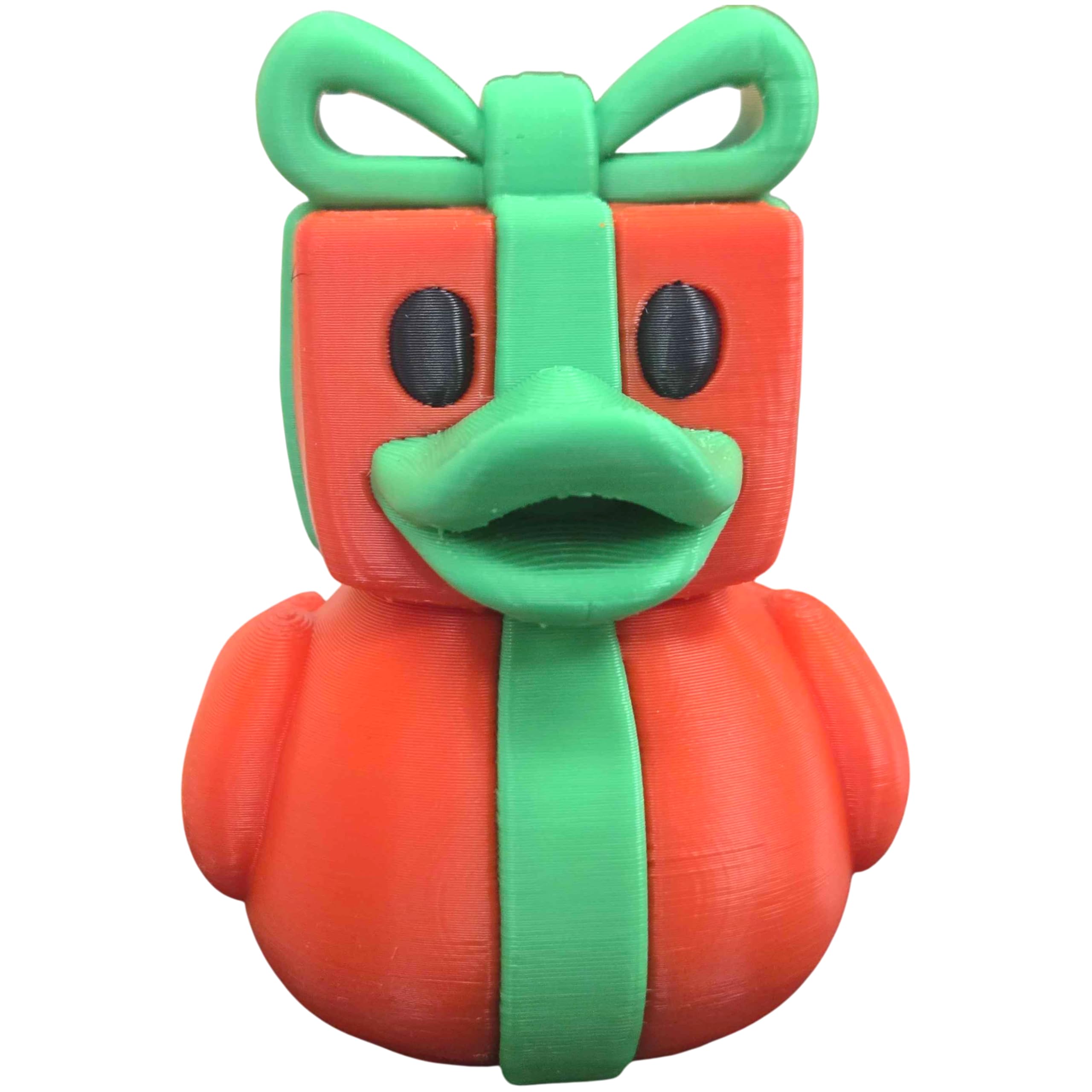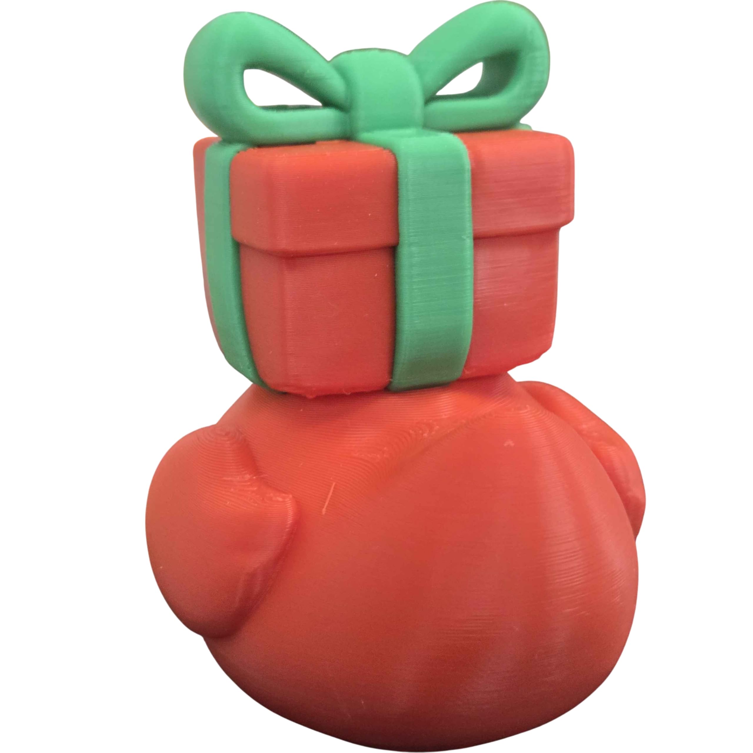 The Wrapped Gift Box Duck Figurine – Festive 3D Printed Duck Sculpture with Present Head & Bow – Unique Desk Ornament, Christmas Decor, Collectible Display Piece is a decorative 3D printed collectible from 3DCentral’s extensive duck collection. Printed at our Quebec-based industrial print farm, this piece captures the playful spirit of rubber duck culture with modern additive manufacturing precision. Premium PLA filament ensures vibrant colors and a smooth, display-ready finish straight out of the box.
