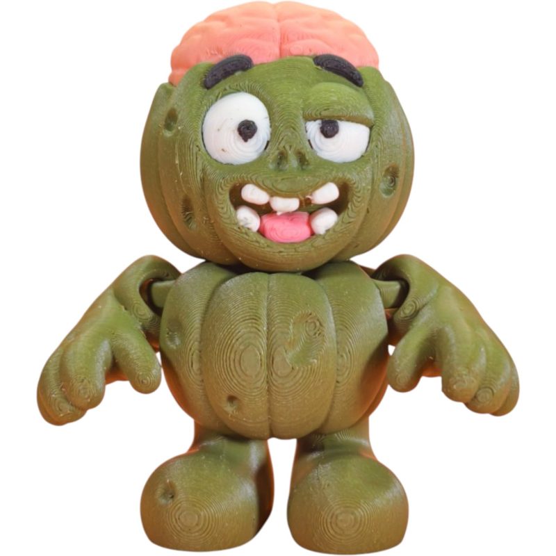 This Zombie Pumpkin Figurine with Brain Detail & Joints – Flexible Halloween Desk Decoration or Spooky Shelf Collectible for Teens & Adults features print-in-place articulation — multiple moving joints produced in a single, uninterrupted print. Manufactured at our Laval, Quebec facility, each articulated piece balances flexibility at the joints with structural strength in the body, creating a poseable collectible that holds its position for display.