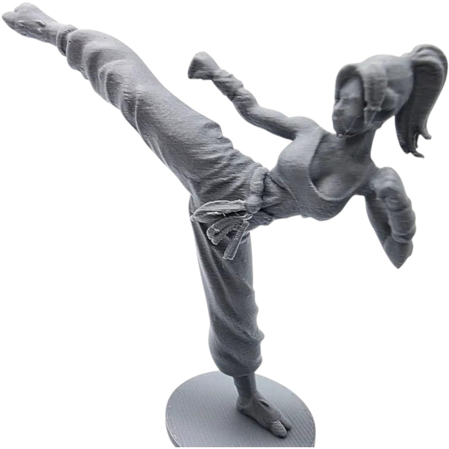 Strike with precision and style with this high-impact Female Kickboxer Figurine—a stunning collectible showcasing a fighter mid-kick, frozen in flawless technique. With her ponytail swinging and body tension perfectly captured, this figurine embodies speed, power, and discipline. Expertly 3D printed by 3DCENTRAL SOLUTIONS in Quebec, Canada, this piece is a top-tier addition to martial arts dioramas, fitness-themed shelves, or motivational decor for athletes and collectors alike. From the textured gi pants to the sculpted muscles and motion-infused pose, every detail adds to the intensity and realism of the moment. ⚠️ WARNING: Choking Hazard – Small parts. Not suitable for children under 15 years. This product is not intended as a toy for young children.