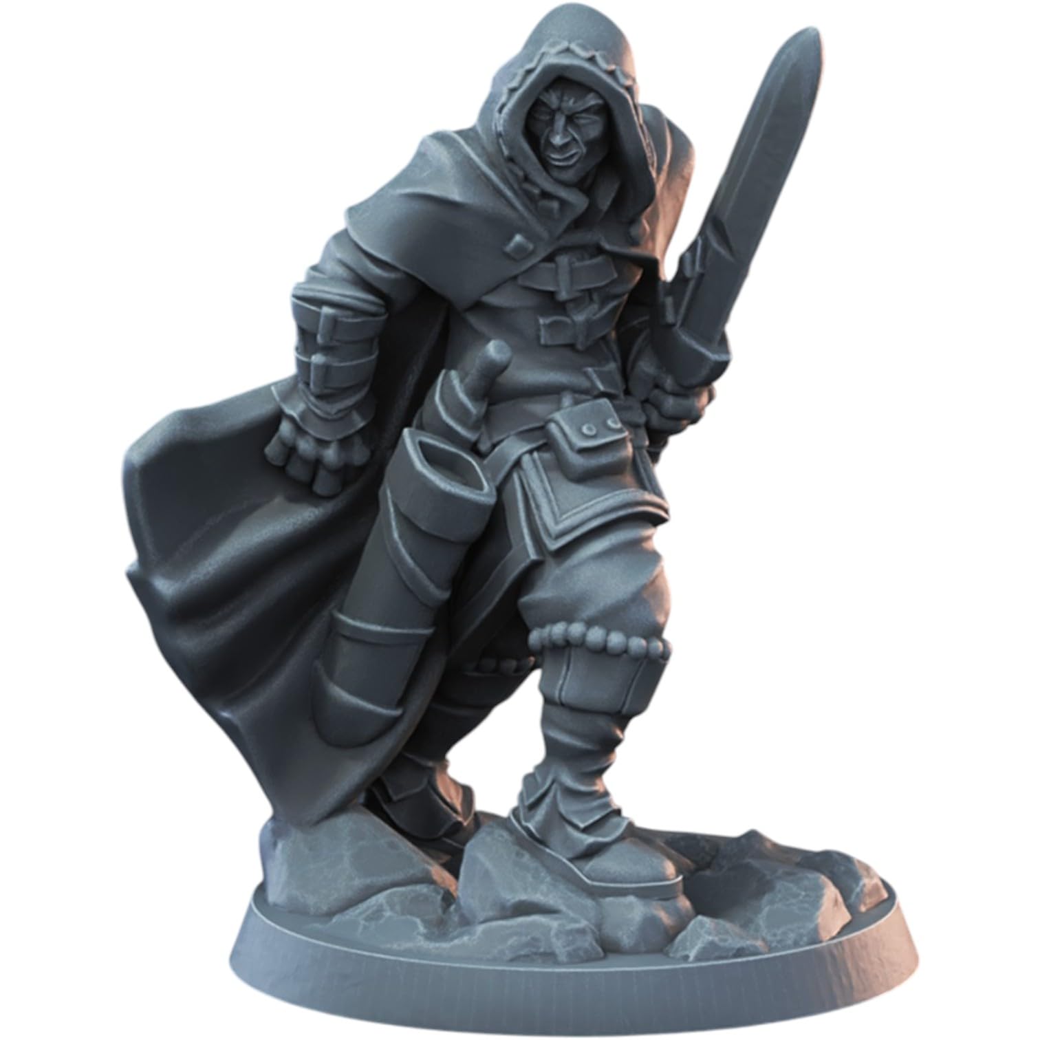 Step into your campaign’s shadowy underworld with this Thief Male miniature, meticulously 3D printed for Dungeons & Dragons, Pathfinder, and other fantasy tabletop roleplaying games. Featuring a hooded rogue with a drawn blade, ready for action, this 32mm-scale figure is perfect for both gameplay immersion and painting enthusiasts. Produced in Quebec, Canada by 3DCENTRAL SOLUTIONS using precision resin printing, this model delivers exceptional detail, sharp lines, and durability. Whether you’re adding a cunning character to your adventuring party or creating a centerpiece for your painted collection, this miniature is designed for impact both on and off the table. ⚠️ WARNING: Choking Hazard – Small parts. Not suitable for children under 15 years. This product is not intended as a toy for young children.
