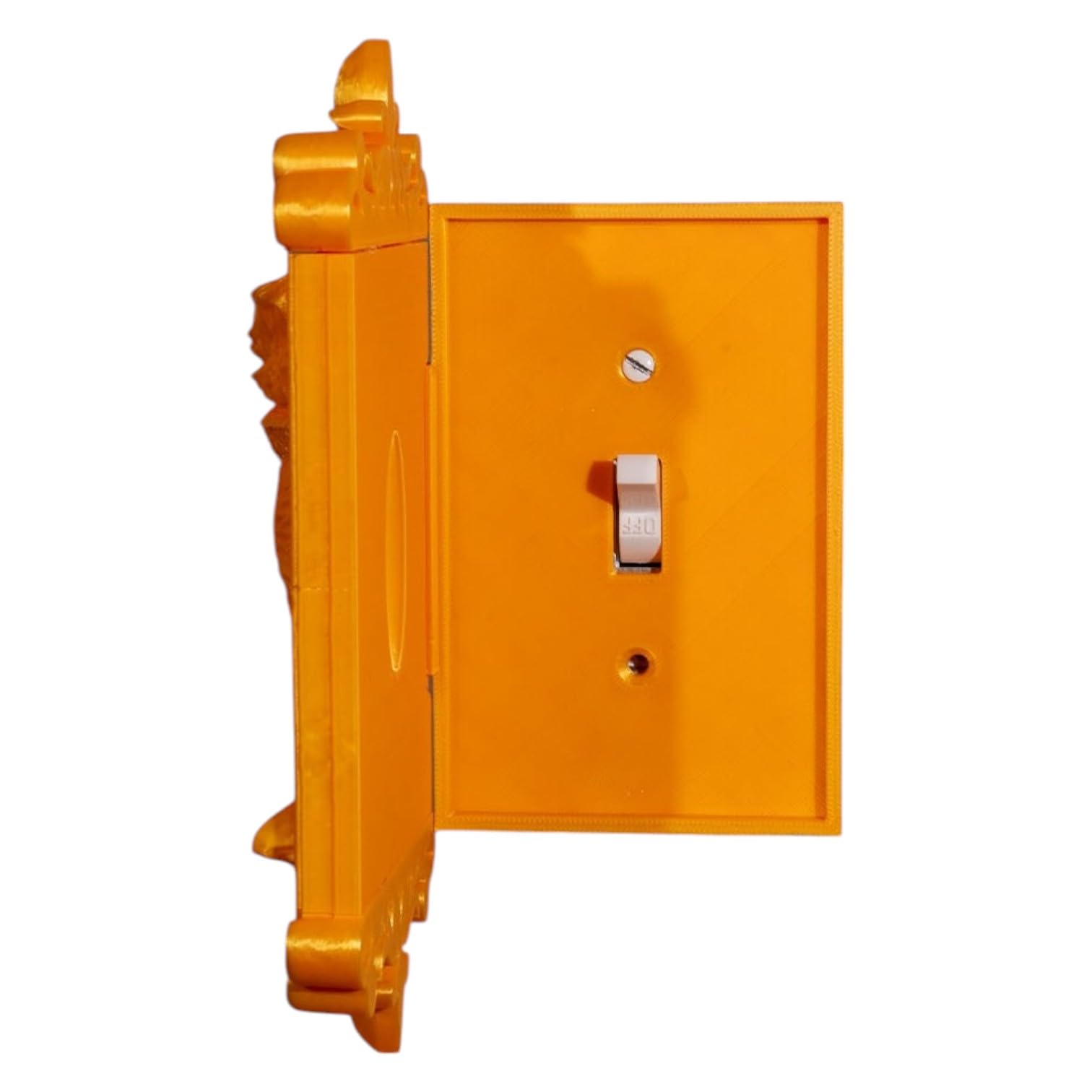 Add a mystical touch to your walls with the Out of Sight Light Switch Cover, where ancient dragons meet everyday functionality. Designed to fit standard single toggle light switches, this hinged cover features a mesmerizing dragon eye carved into ornate detailing—evoking the feeling of a powerful relic hiding in plain sight. The functional front flips open to reveal your switch, while the frame adds flair to any fantasy-themed room. Whether you’re customizing a gaming den, medieval-themed bedroom, or just love eccentric home accents, this switch plate commands attention like a guardian of light.
