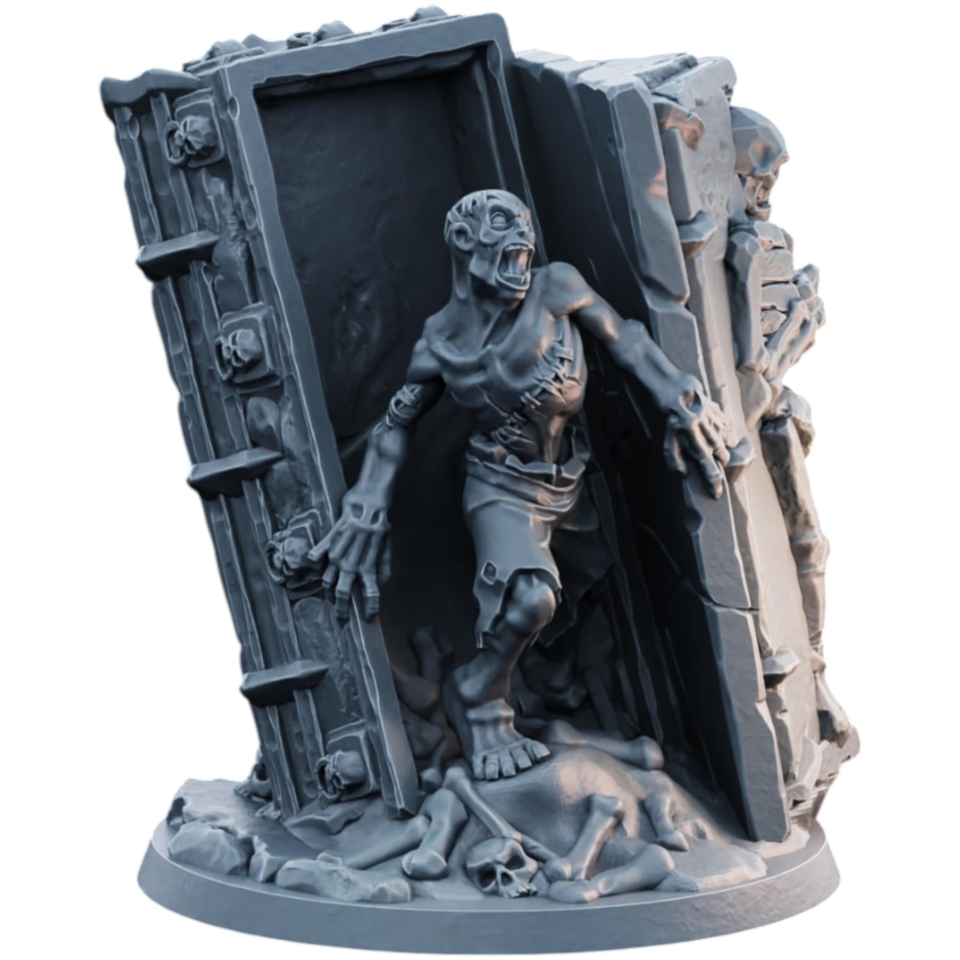 Undead Zombie Emerging from Coffin Miniature for Tabletop RPG, Horror Dioramas & Fantasy Painting – 3D Printed in Canada