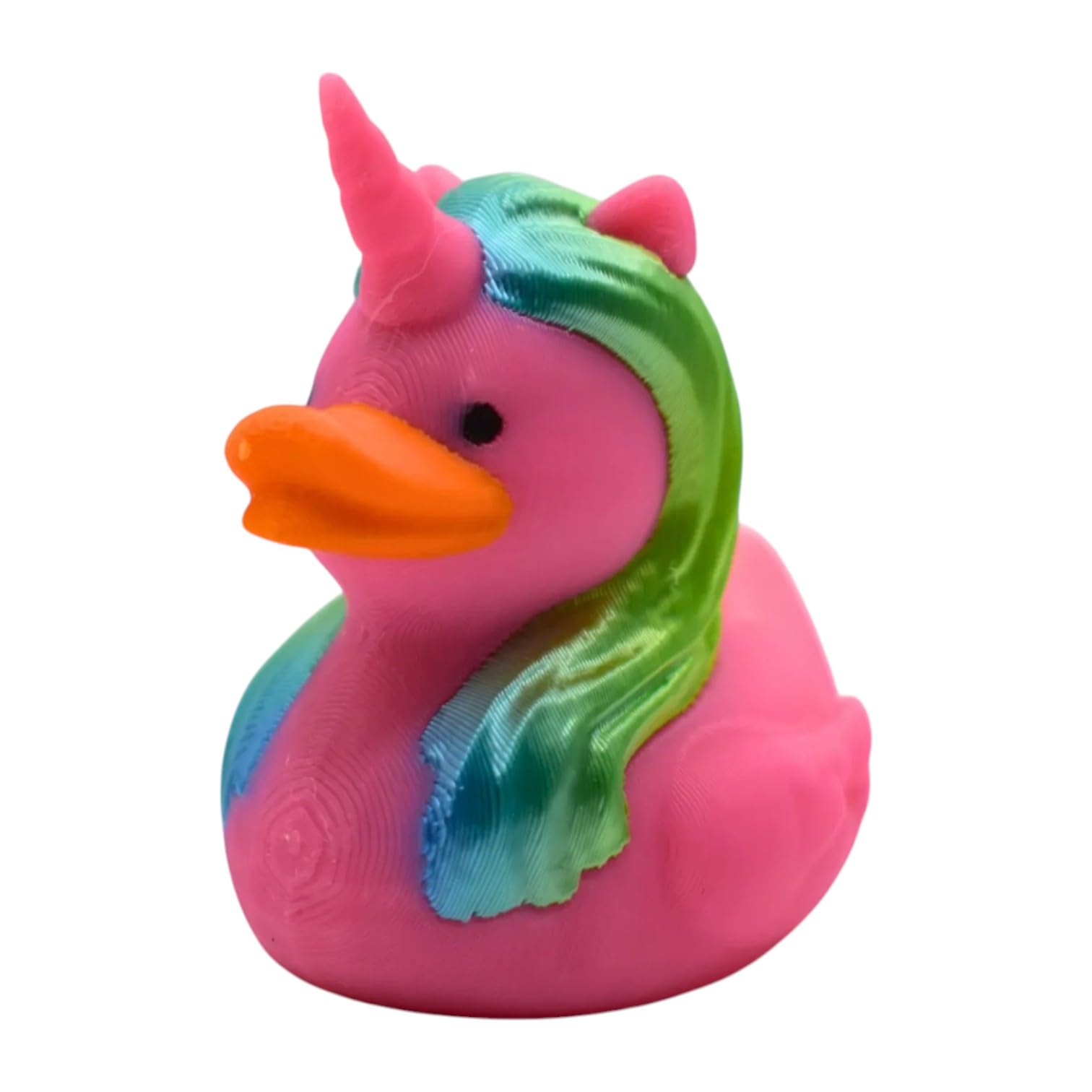 Experience the magic of our Unicorn Rubber Duck - where fantasy meets the popular world of collectible ducks! This enchanting pink duck figurine transforms the classic rubber duck into a mystical creation with its vibrant unicorn horn and flowing rainbow mane. Perfect for the growing trends of Jeep ducking and cruise ship duck hiding, this unique mini duck stands out from standard tiny ducks with its eye-catching design and superior quality. Join the popular ducking traditions that are sweeping across Jeep communities! This colorful unicorn duck is perfect for surprising fellow Jeep owners with a delightful duck gift on their vehicle. Our duck is more durable than typical rubber ducks for Jeeps, making it a lasting memento. For cruise enthusiasts, this unicorn duck is ideal for the cruise duck hiding phenomenon - its distinctive design ensures it won't be confused with ordinary ducks for cruise ships. Expertly 3D printed in Canada using eco-friendly PLA material, this collectible duck figurine is more than just a toy - it's a conversation starter, a dashboard decoration, and a collector's item all in one. Unlike bulk 100-pack or 500-pack mini ducks, our unicorn duck features premium detailing and vibrant colors that won't fade easily. Each duck is carefully crafted by 3DCENTRAL SOLUTIONS in Quebec, ensuring top-tier quality. Whether you're expanding your own dashboard duck collection, looking for unique baby shower favors, searching for the perfect birthday gift in a themed gift bag, or wanting to start your duck-hiding adventure on your next cruise, our Unicorn Rubber Duck delivers magical charm and quality craftsmanship in one adorable package. Start your ducking journey today with this whimsical unicorn duck that brings fantasy to life!