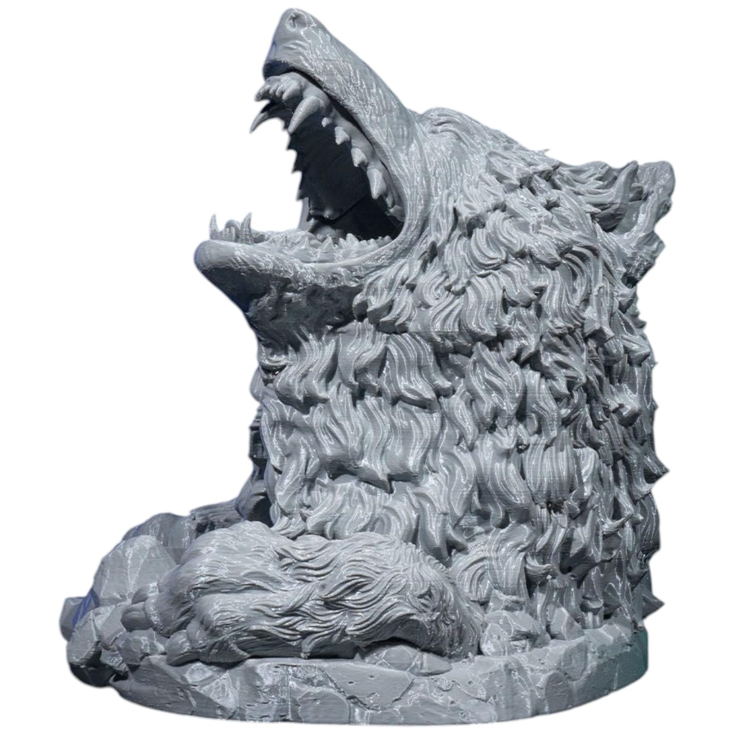 Channel the feral spirit of the wild with the Wolf Bite Dice Tower, a stunning fusion of primal energy and functional gaming art. Expertly 3D printed by 3DCENTRAL SOLUTIONS in Quebec, Canada, this piece captures a ferocious wolf mid-howl, teeth bared and ready for battle. The Wolf Bite Dice Tower not only ensures randomized, fair dice rolls, but also commands attention as a powerful centerpiece for your RPG sessions. Designed for Dungeons & Dragons, Pathfinder, and other tabletop adventures, it features detailed fur textures, rocky basework, and a dynamic open-maw chute for a smooth dice cascade. Printed using high-quality PLA filament with a sleek stone-gray finish, this dice tower is a rugged, versatile addition to any gaming setup. Whether you're leading a barbarian pack or traversing frozen wildernesses, this dice tower will be your faithful companion through every quest.